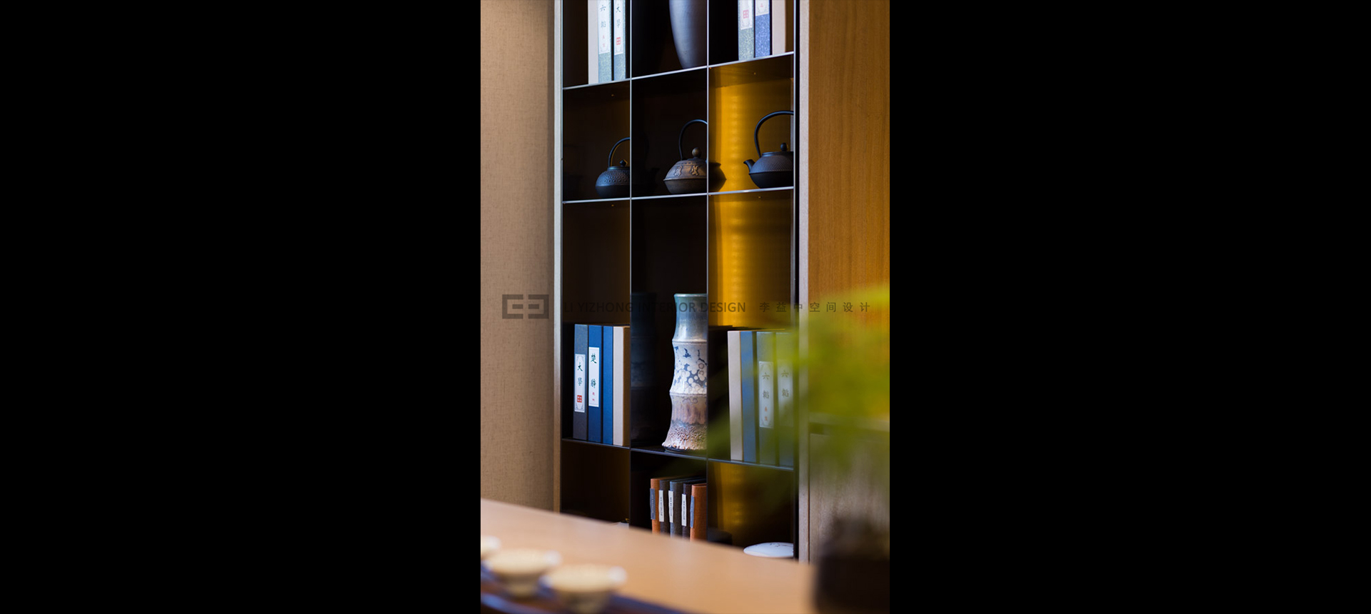 The semi-open bar with the wooden partition brings space a sense of order and sets off the landscape arts, which plays with the effect of finishing touch. The living room with perfect symmetry has exquisite and simple lines, covering carpets with dried mountains and rivers on the floor. We express idea with the shape, and express emotion with the idea.