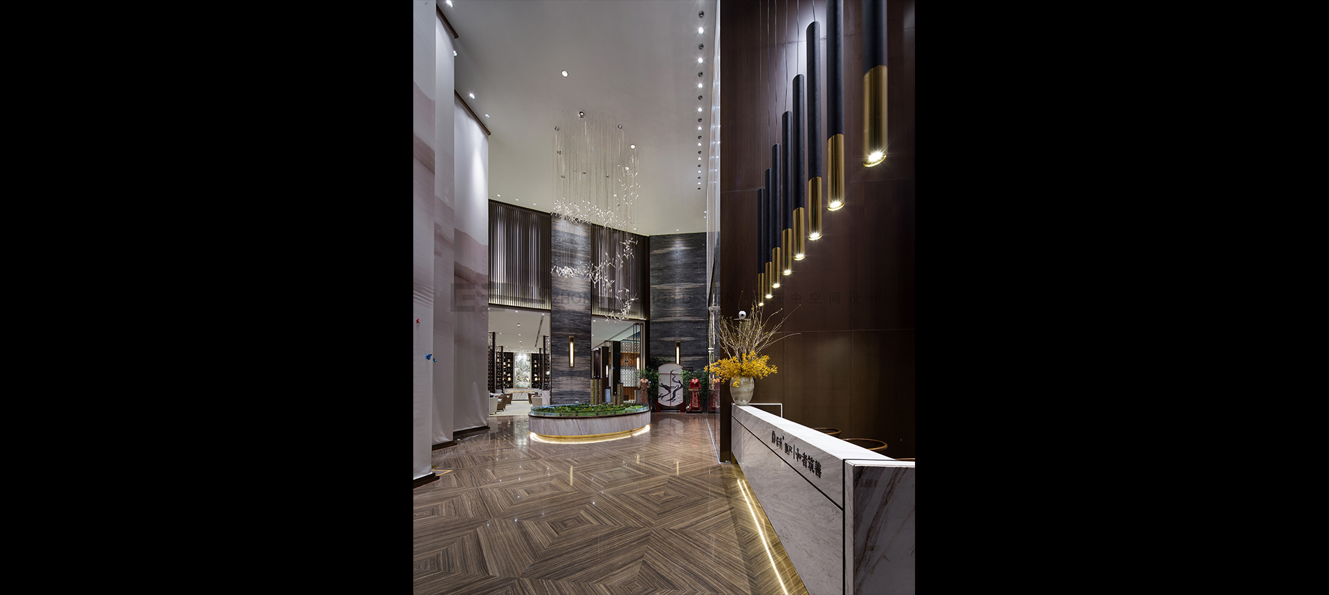 本案旨在营造一个有品位、醇厚、低奢精致并具有东方情怀的售楼处。