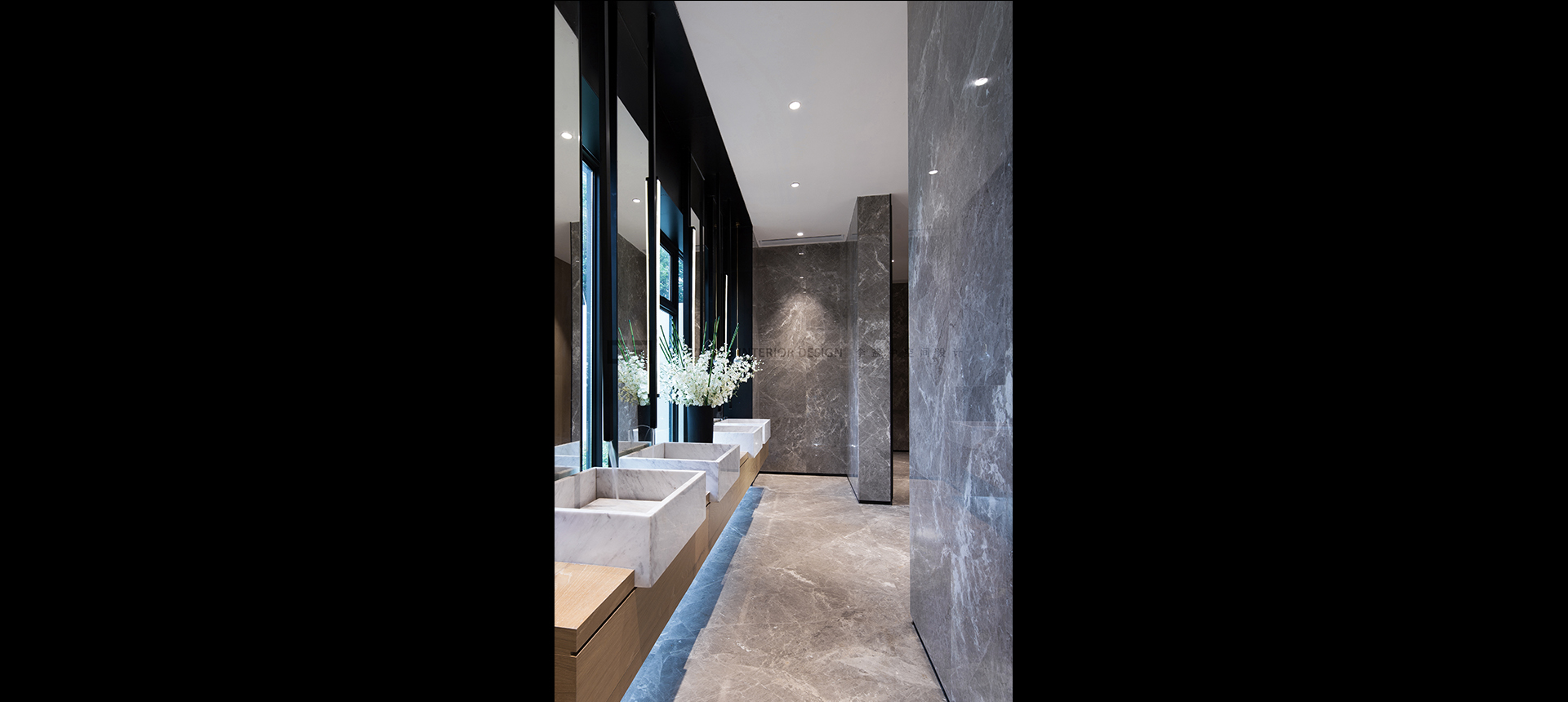 设计主材:新土耳其灰大理石、奈高斯灰大理石、雪花白大理石、白砂米黄大理石、夹丝玻璃、古铜板、钢拉网、烤漆板、布艺硬包、皮革硬包