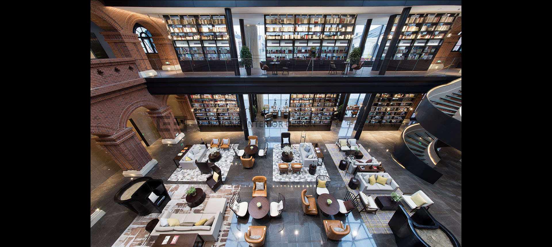本案要呈现的是一种美国大学的图书馆的味道,贯穿中庭的书架,随处可见的阅读桌,尺度宜人的阅览间,教育主题的艺术挂画及雕塑等。