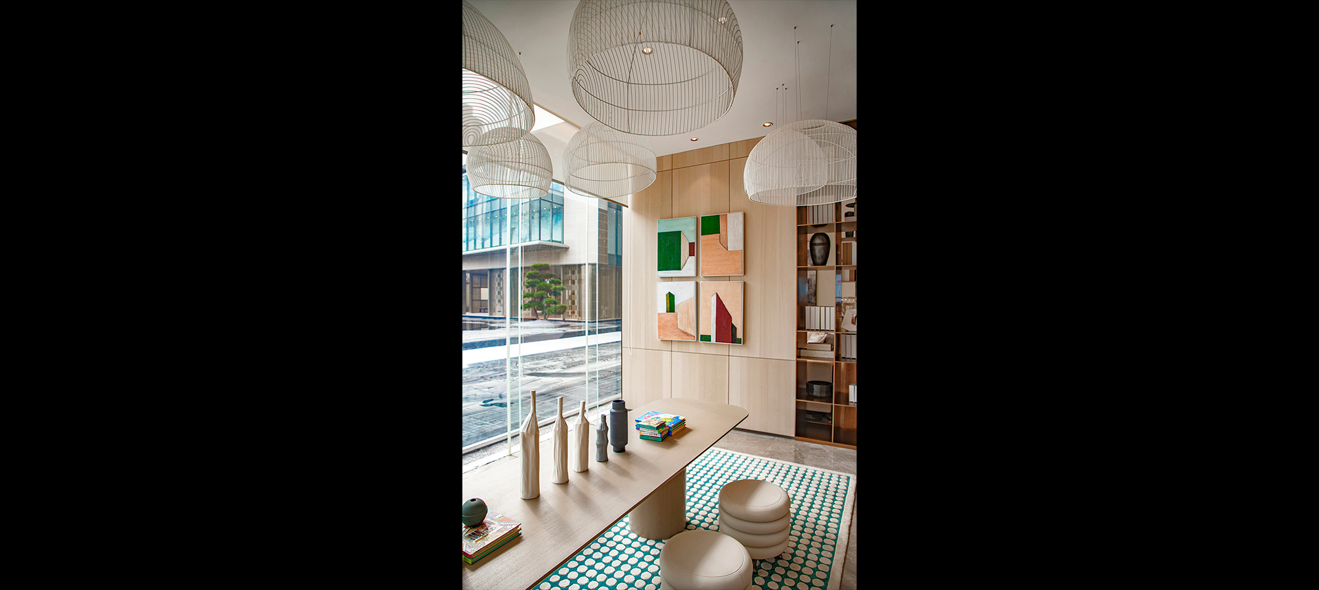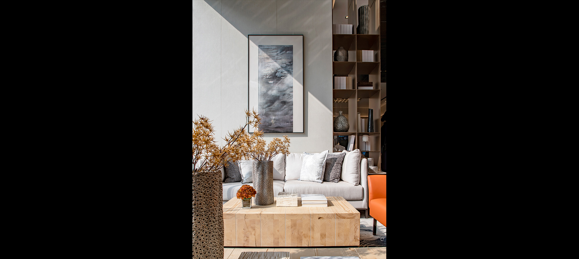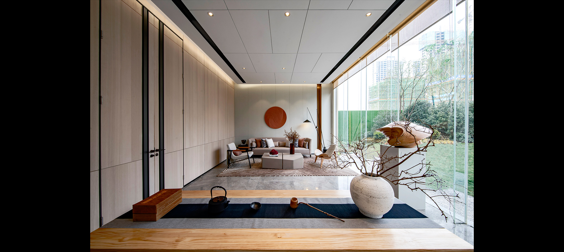 设计师探索了售楼空间全新的意识维度,以现代设计的简练笔触,给东方式的静穆增添时代性的内涵,继而回归生活的本心。