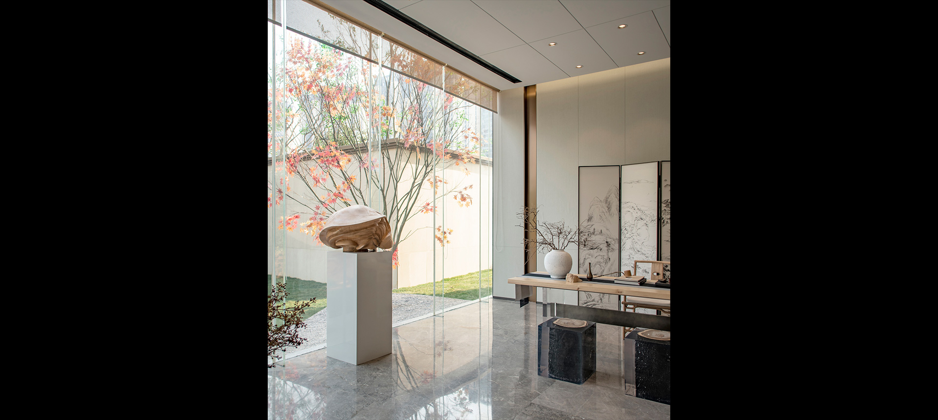 通透的室内将室外的景观纳入空间,使内外之景呼吸串联,自由气韵贯穿始终。