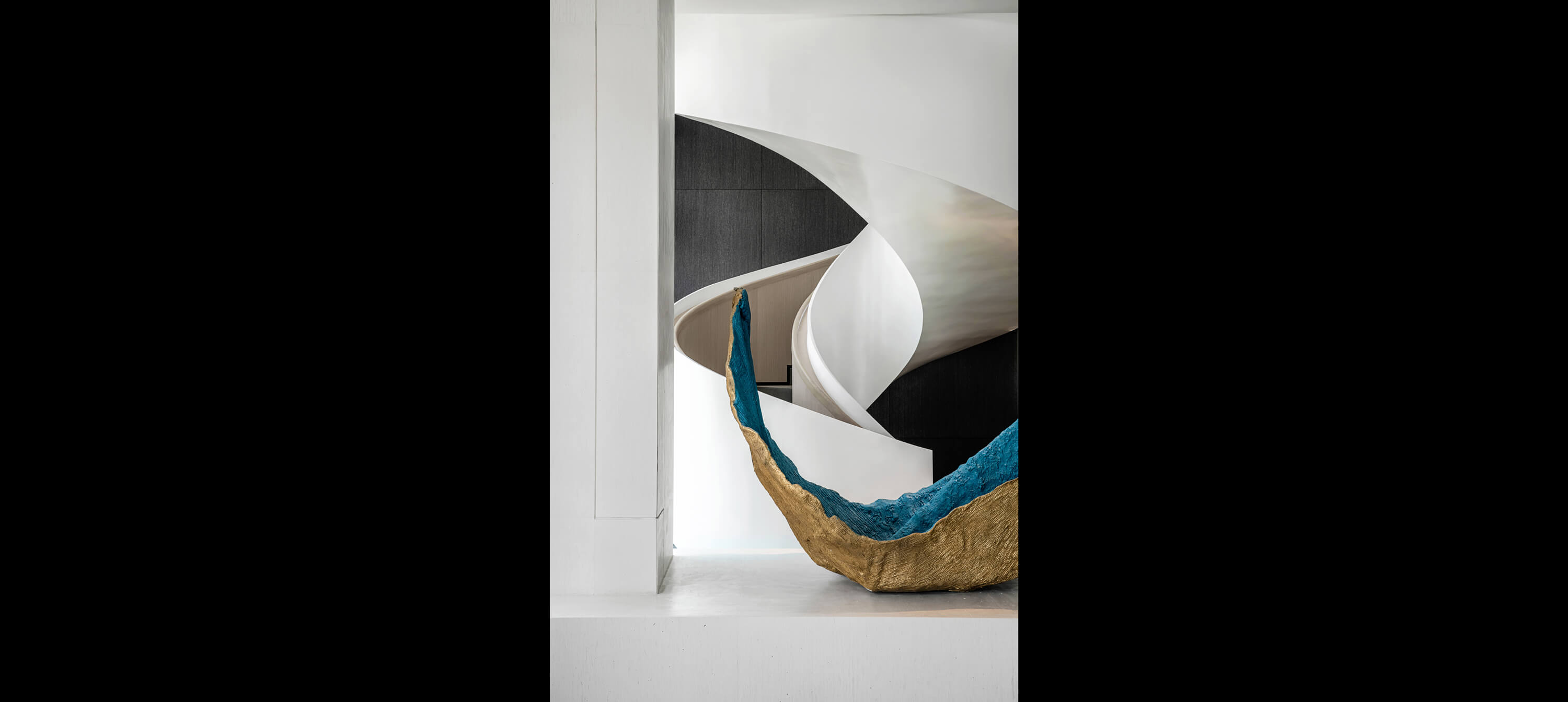 旋转楼梯与艺术装置是舞动的“精灵”,造型和线条展现力量与灵动。艺术品为空间的空白填补想象,在具象与抽象之间,传递价值。Works of art fill in the space of the imagination, betweenthe concrete and abstract, transfer value.简洁的表现手法,