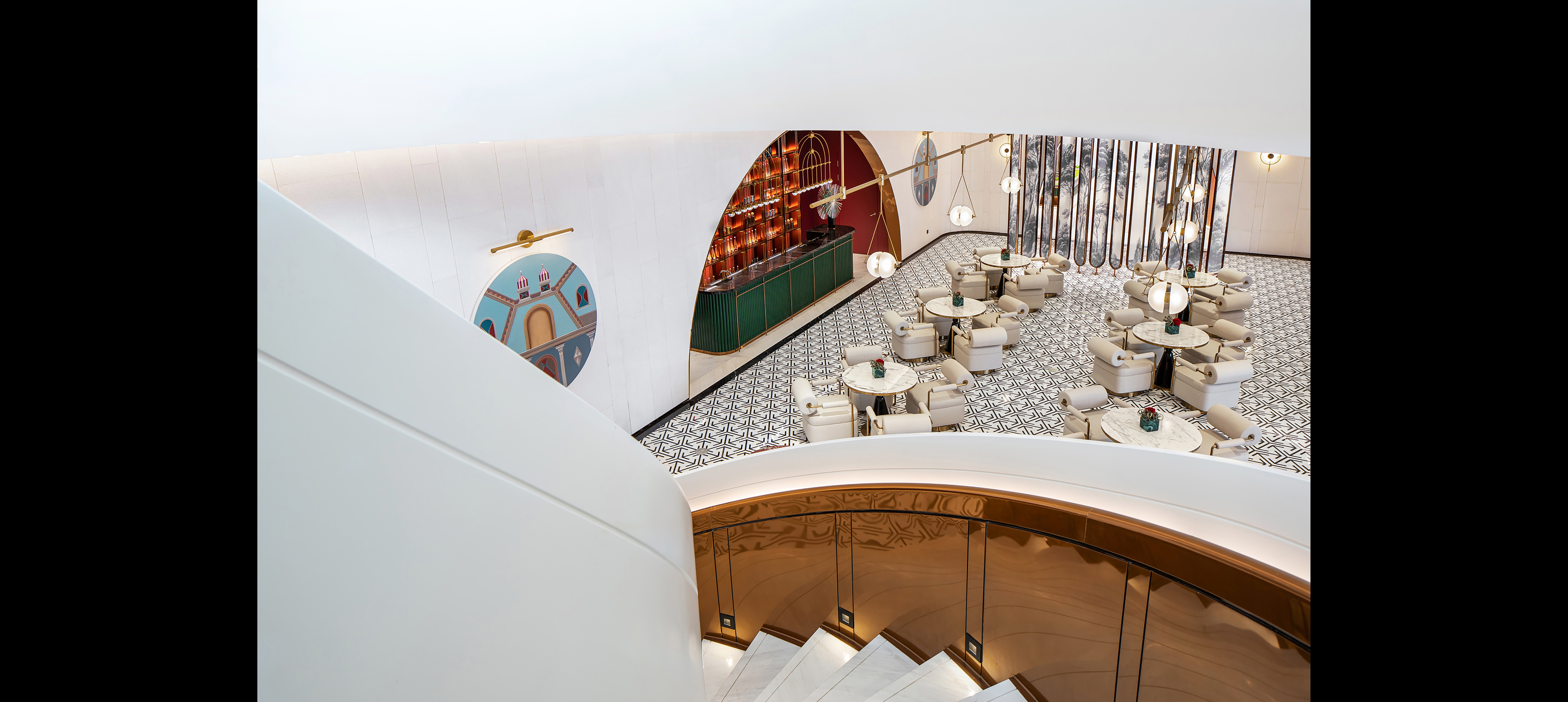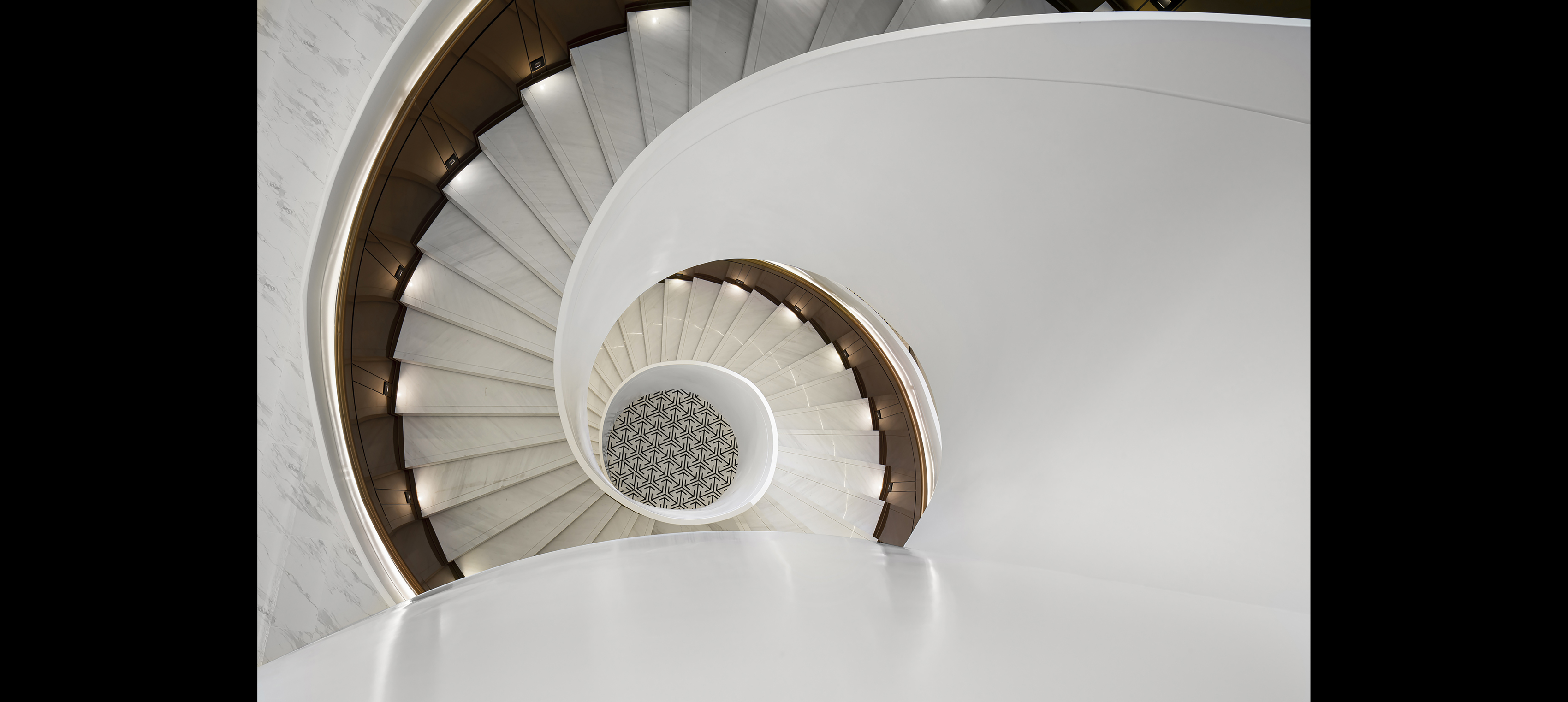 正如柯布西耶所说:“基于秩序的原则,这才是自由。”李益中在旋转楼梯上的艺术表达,不仅是基于策略性而营建的空间亮点,更是一种功能与秩序、自由与线条达至平衡的状态。目之所及的曲折,移步异景的蜿蜒,如此富有艺术张力的自由之境,定格在设计师笔下,亦停格在来访者的相机之中。