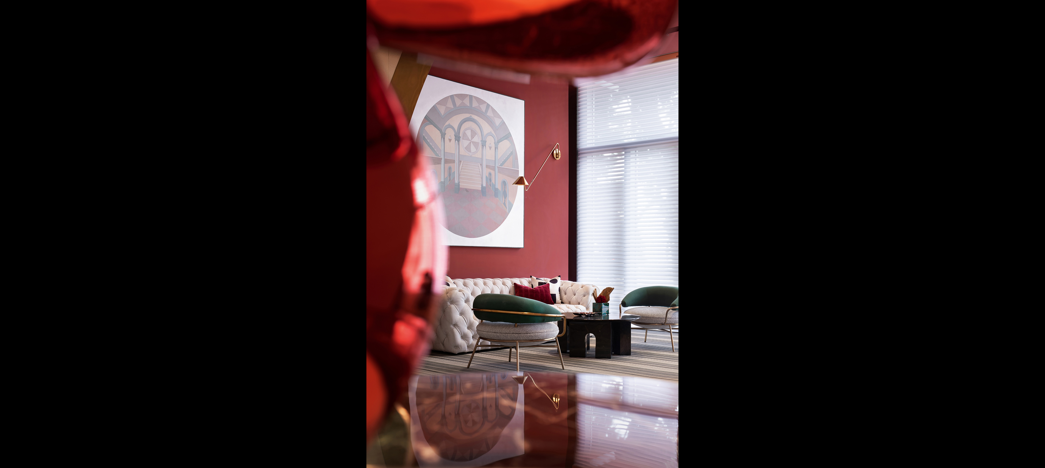 设计师塑造空间氛围的关键,在于克制的细节、审慎的美学、自由的艺术形式。对绿色恰到好处的运用,是设计师对古树树影的抽象化延伸,与红色相得益彰,二者共存于某种基于美学尺度与拍照比例的光影之中。