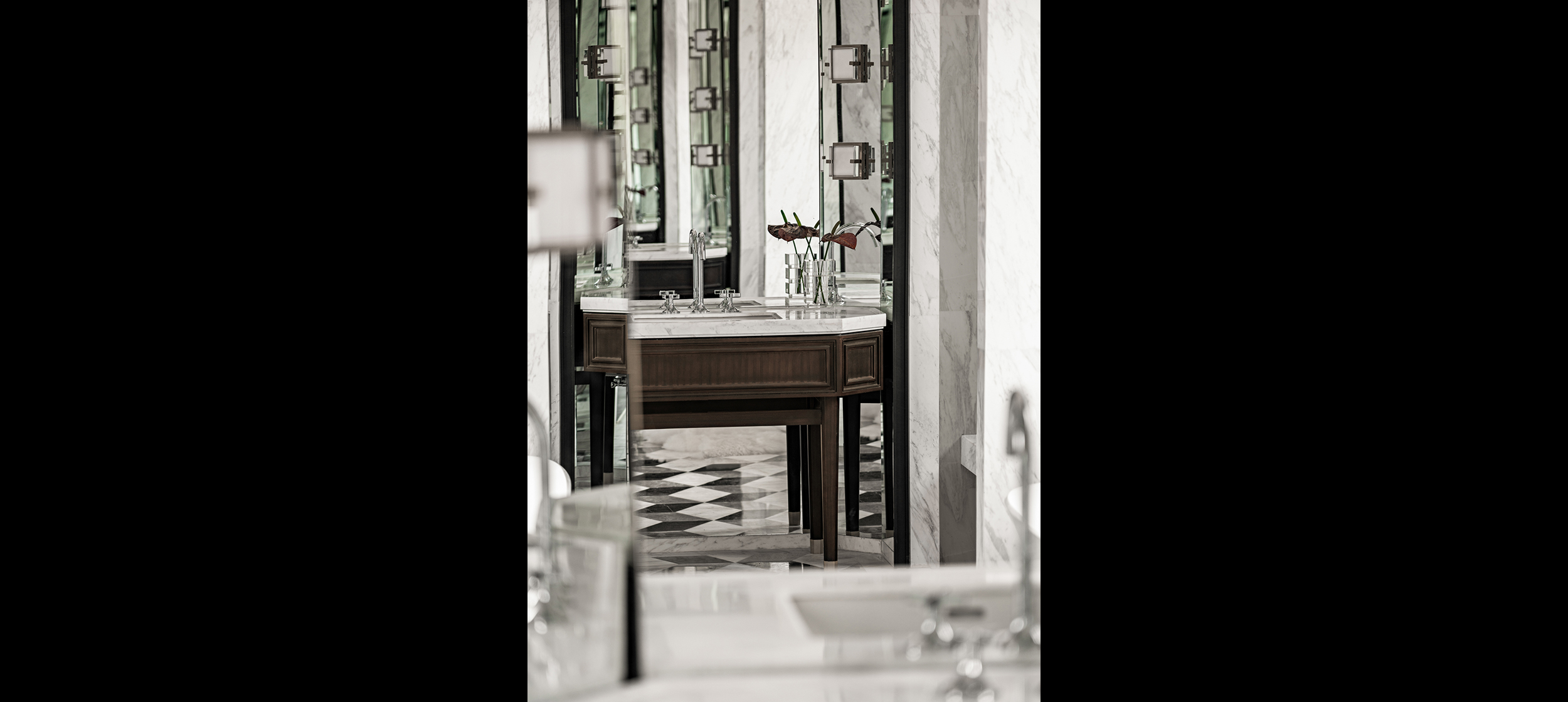 主卫在两端对称式摆放了两个一样的盥洗台,以镜面反射镜面,增加互动和趣味,让空间生动起来。