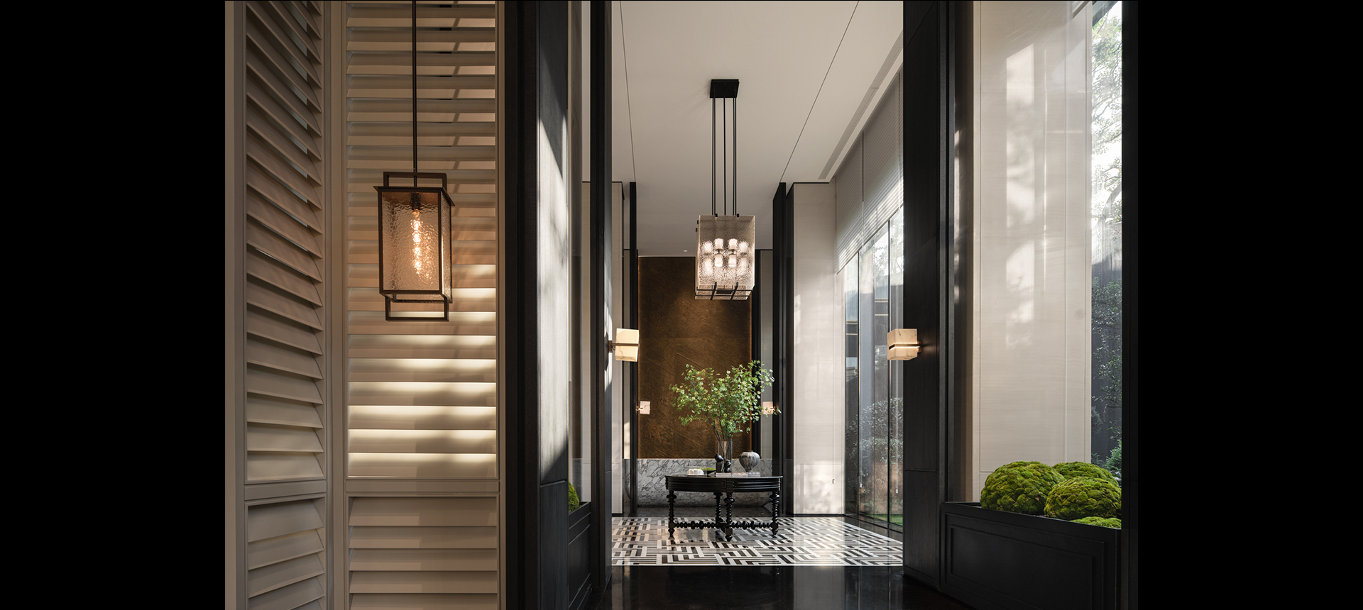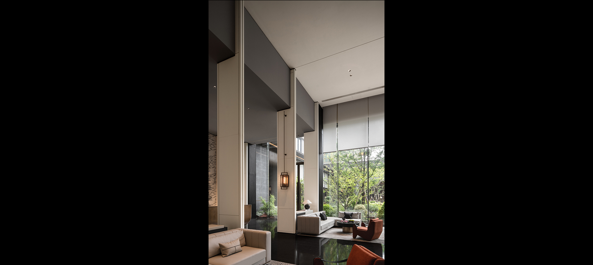 重庆龙湖江山颂,室内设计不仅有对城市地理、人文的追忆,更有对现代都市精神的体现与展望。现代科技与传统文化共生,自然山水和现代建筑交融,是她的独特魅力。