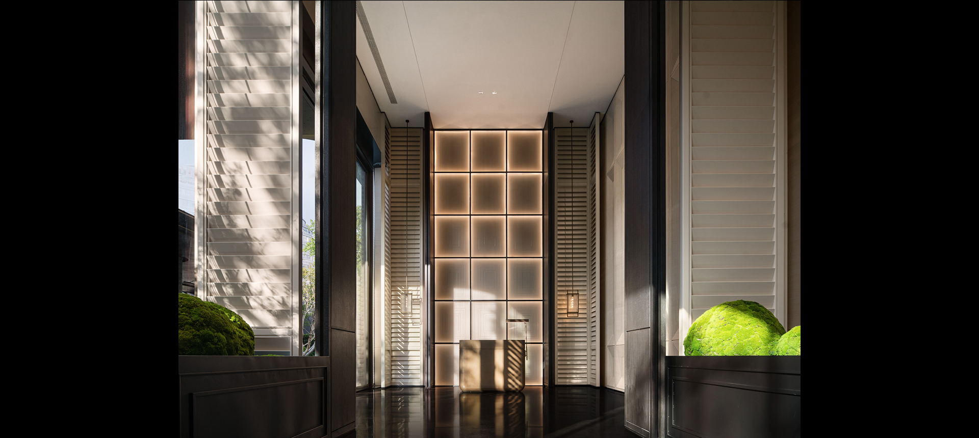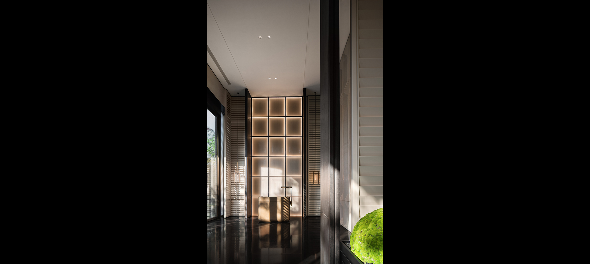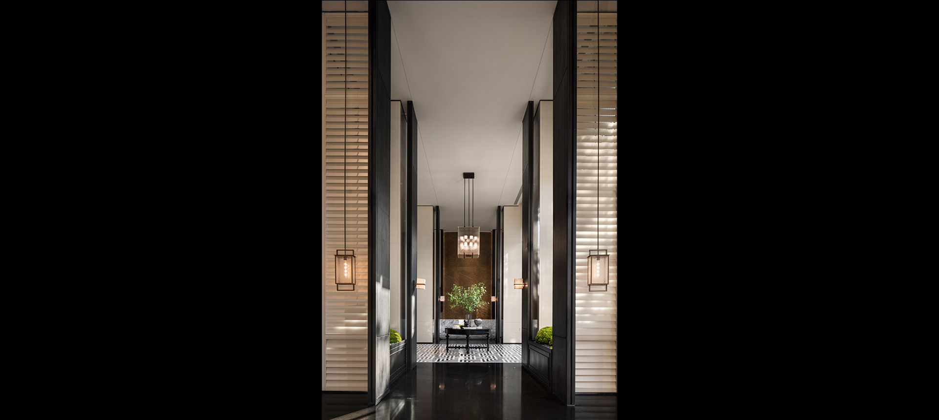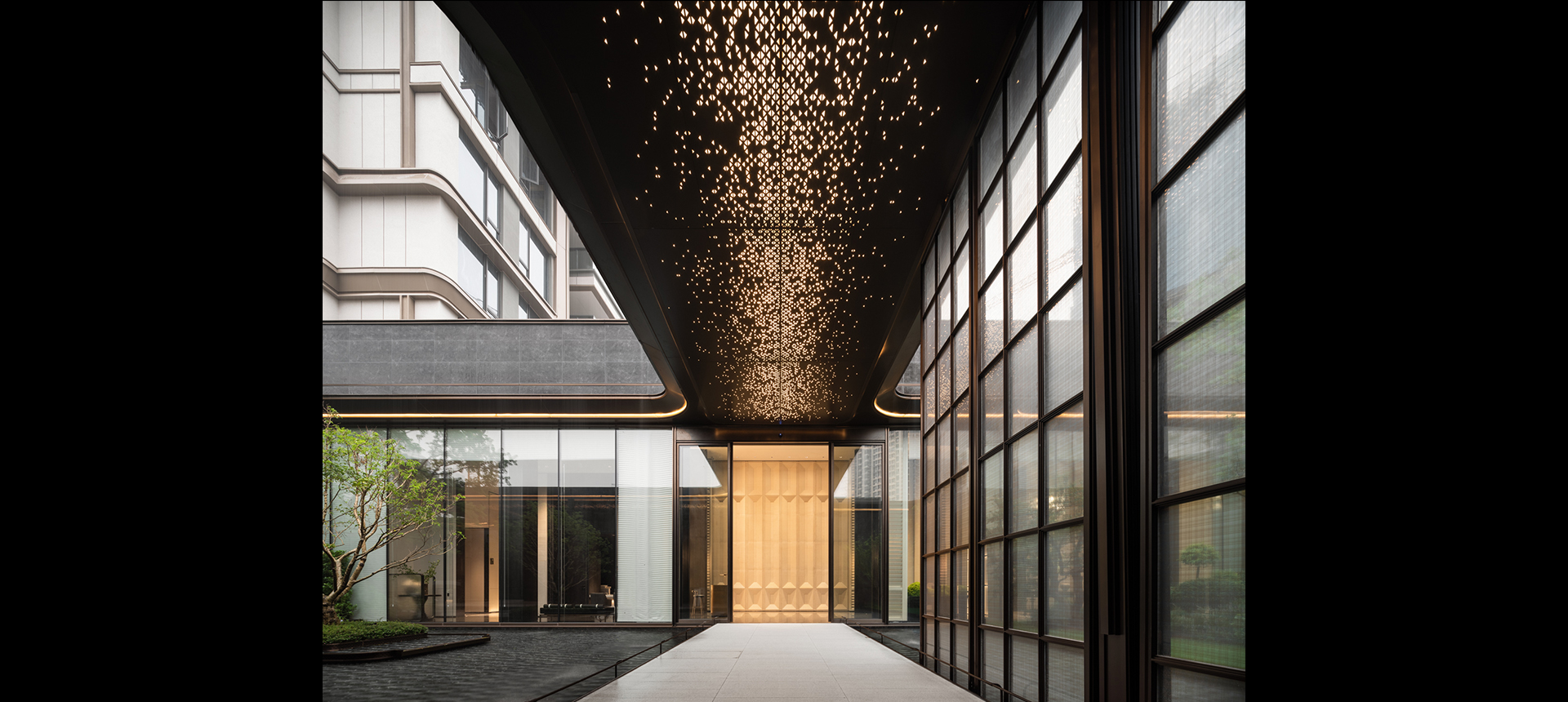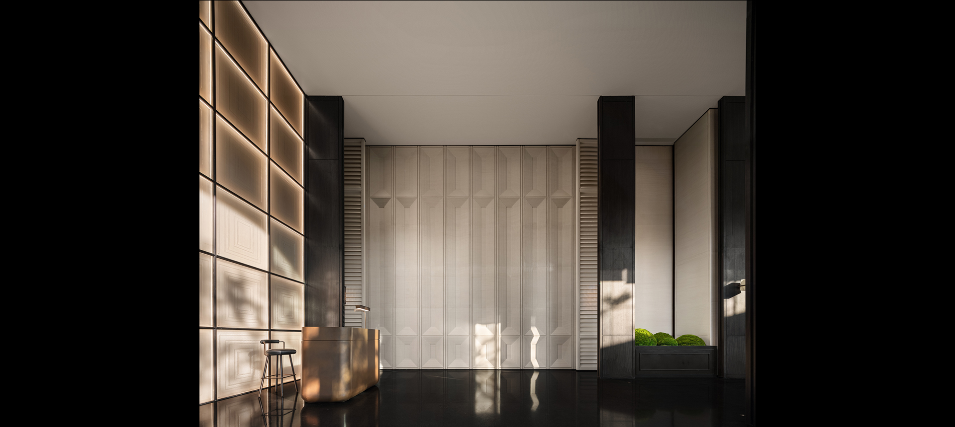 高挑的空间内是仪式和尊贵的细腻传达,层层递进的屏风如线条谱写立体的前序,引导人们通往下一段乐章。空间的立体美感,错落有致的层次,自然地衍生出山城的地理特色。