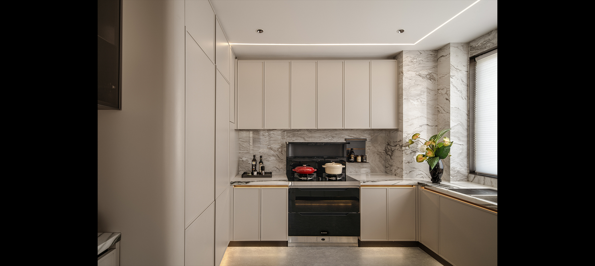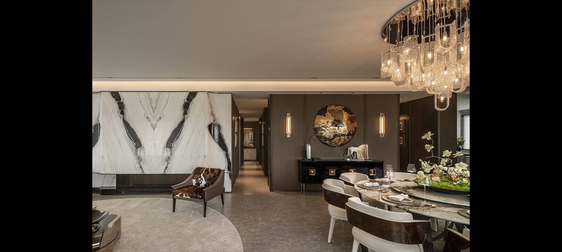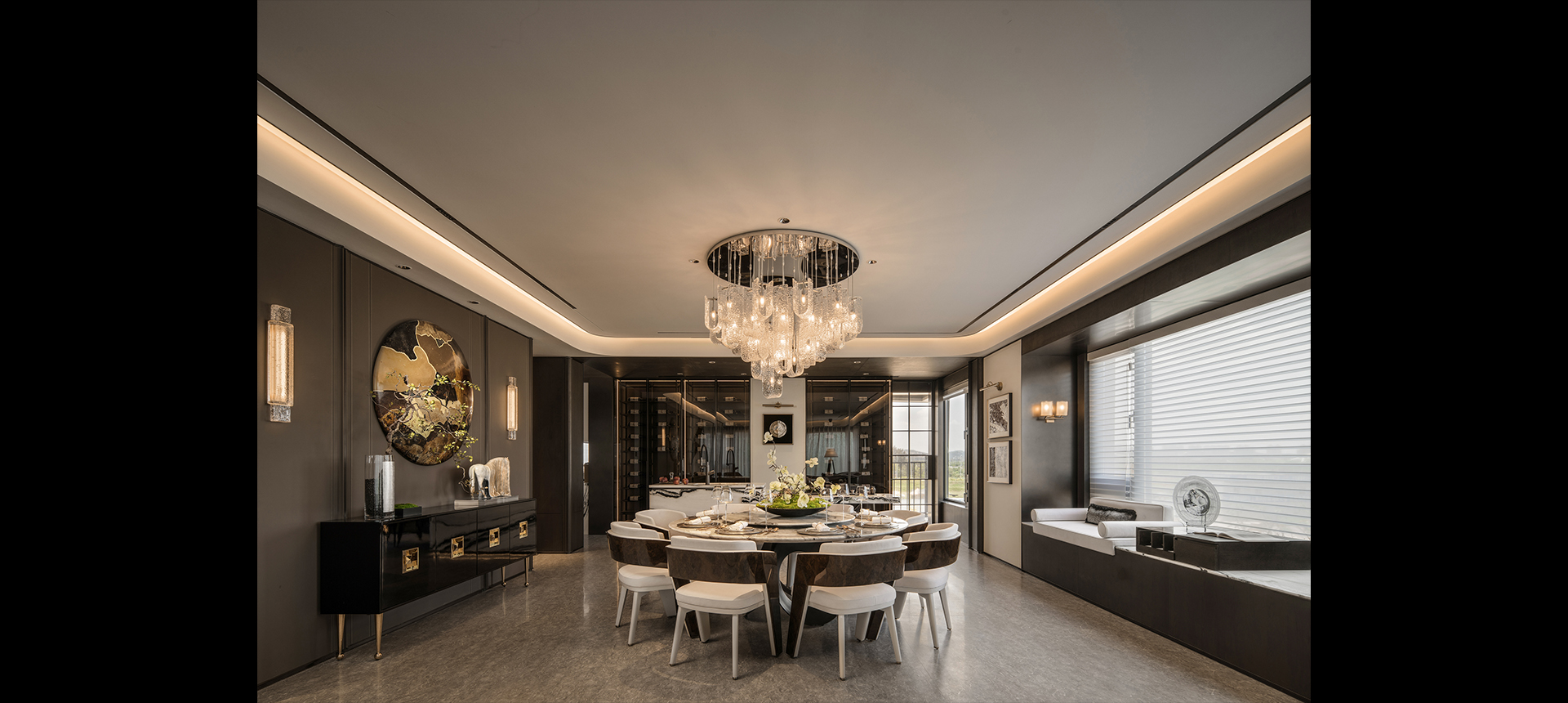 设计将整个动区化零为整,实现一个超级尺度+复合场景的生活场,在一个格局自由的开放性空间内同时呈现客餐厅、中西双厨、茶吧等多重复合空间。