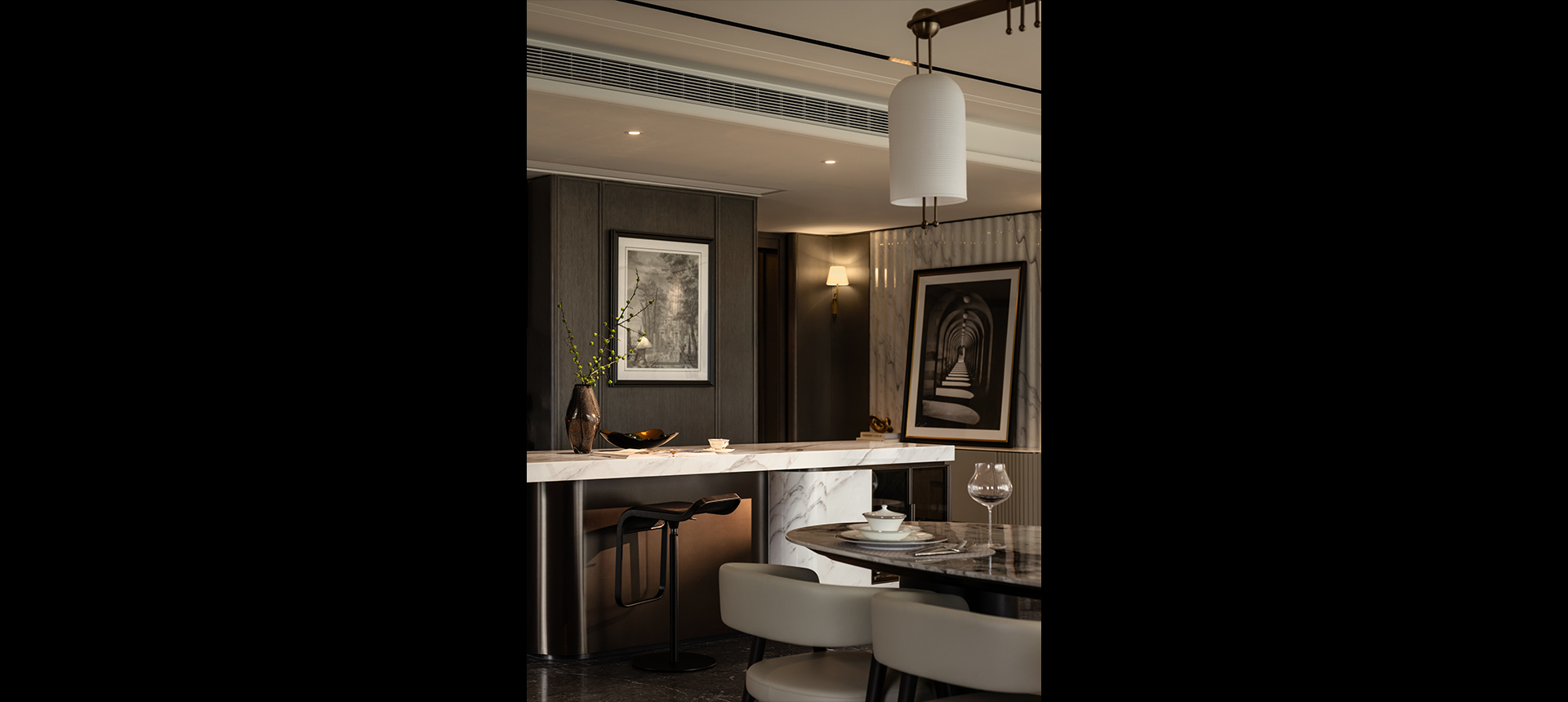 光与影的交织,空间与时间的流转构成韵律和美感,编织一个和谐之美和内外关联的居住空间。
