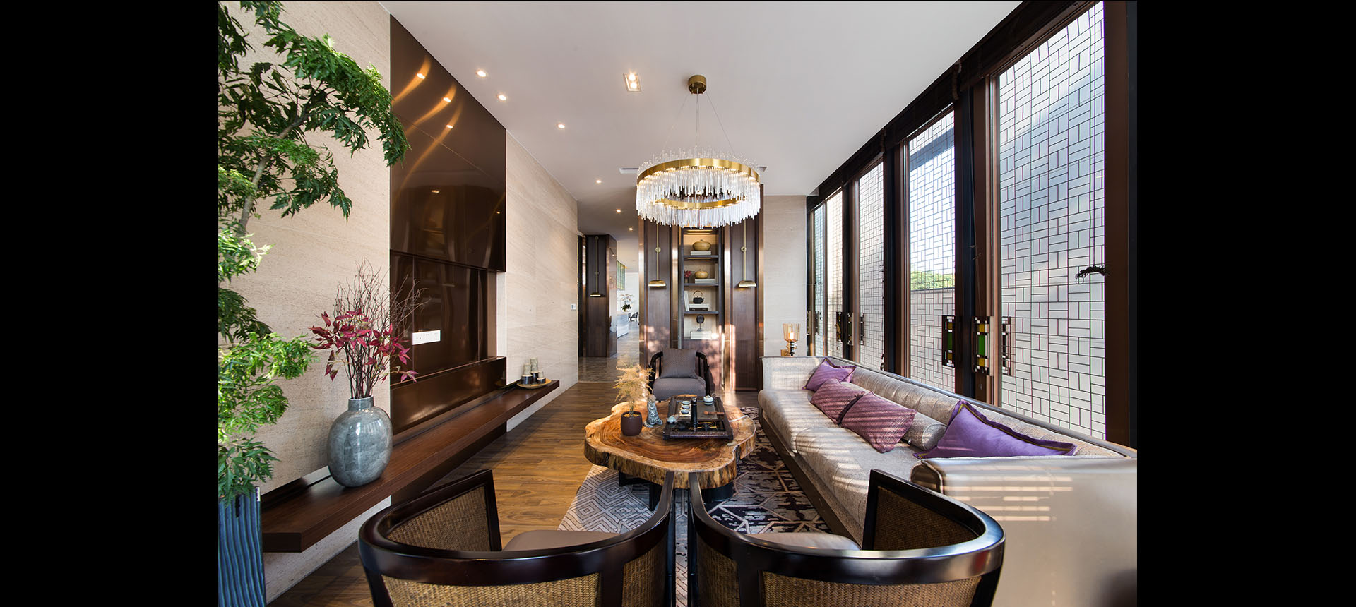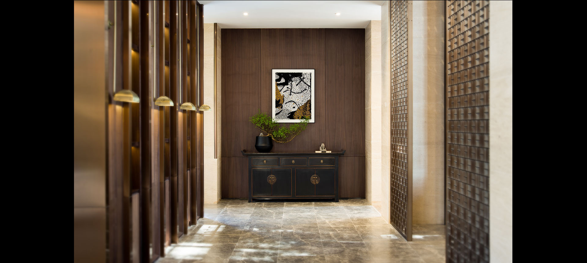 我们延续了硬装沉稳内敛的东方气质,挖掘极具岭南代表性的文化元素,注重把握文化内涵及搭配元素,将传统与现代,东方与西方,民族与世界完美融合,演绎出一个极具人文情怀和东方气质的艺术空间。