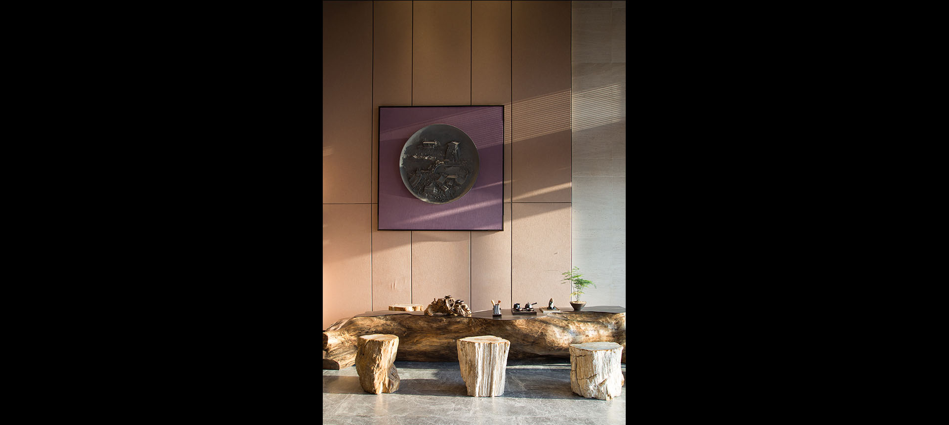 We picked up deep light wood finishes and stones as the main materials to show warm, cozy and exquisite mechanism. The low-purity cotton linens, metallic lighting and artworks we select keep pace with the atmosphere of space.