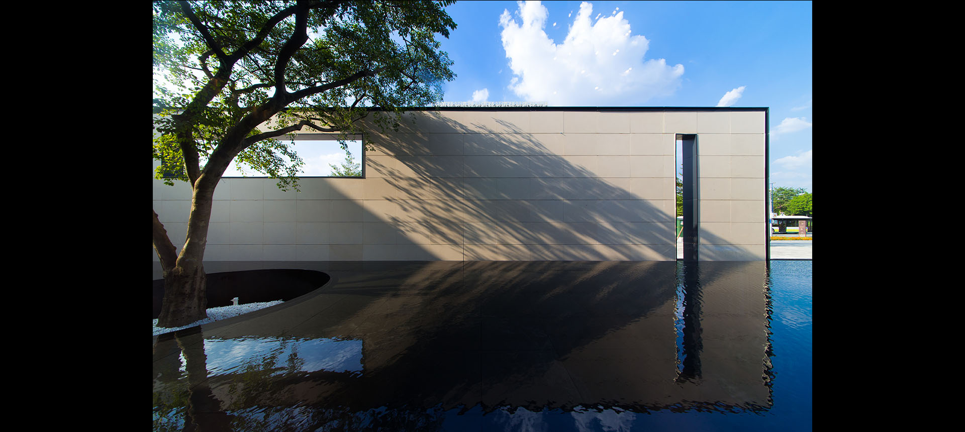 The shape of interior wall refers to the edge of porch of Xiguan Mansion, which shows the ancient architecture of Lingnan.