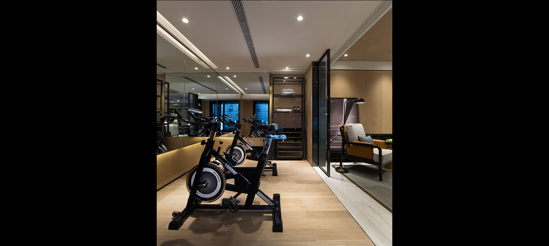 地下室设有多功能区、茶室、家庭影院、健身房和休闲庭院。在色彩方面,我们以米灰色、木色和深咖色为基调,运用大地色系及翠绿色加以点缀,给人一种低调内敛,干净简洁的视觉感受。在软装的材料上,我们追求现代、质朴的风格。