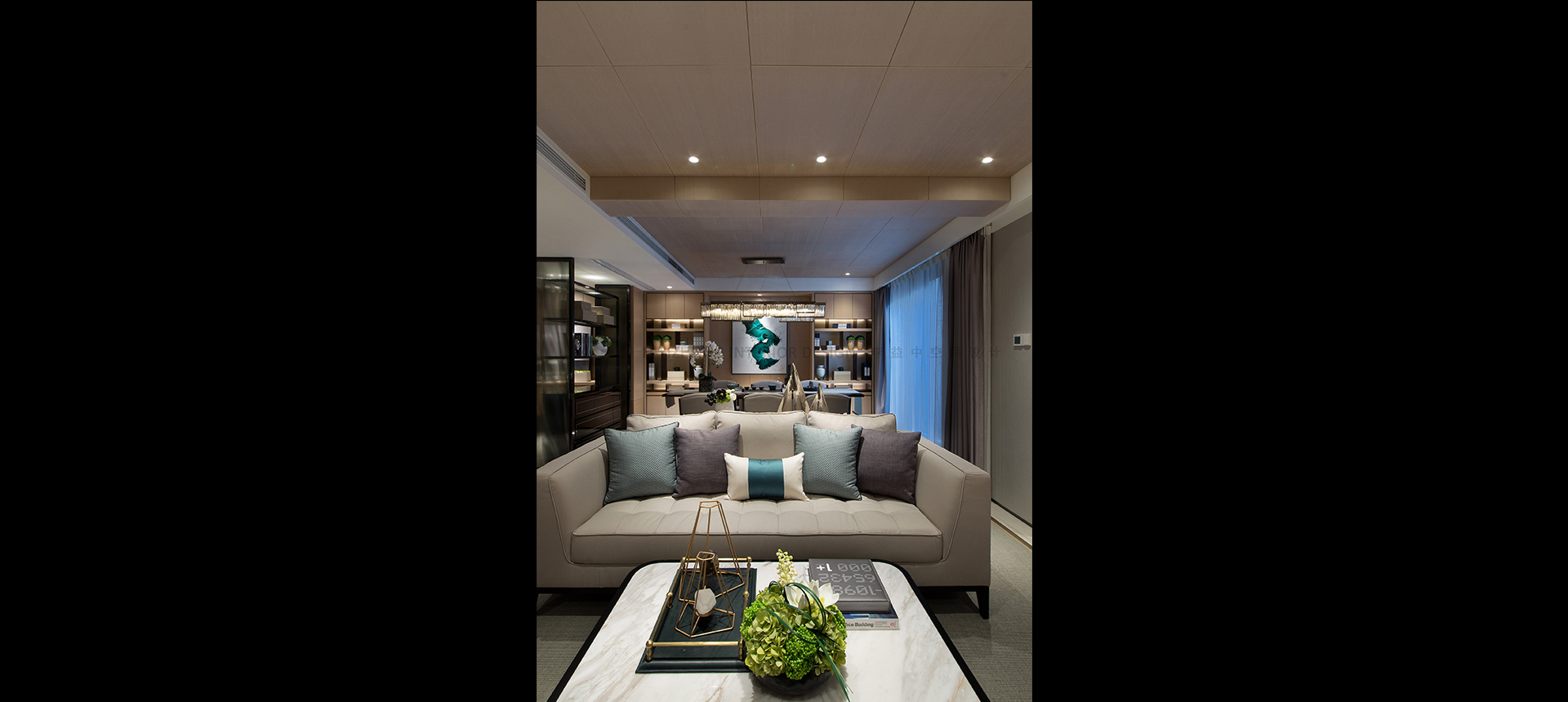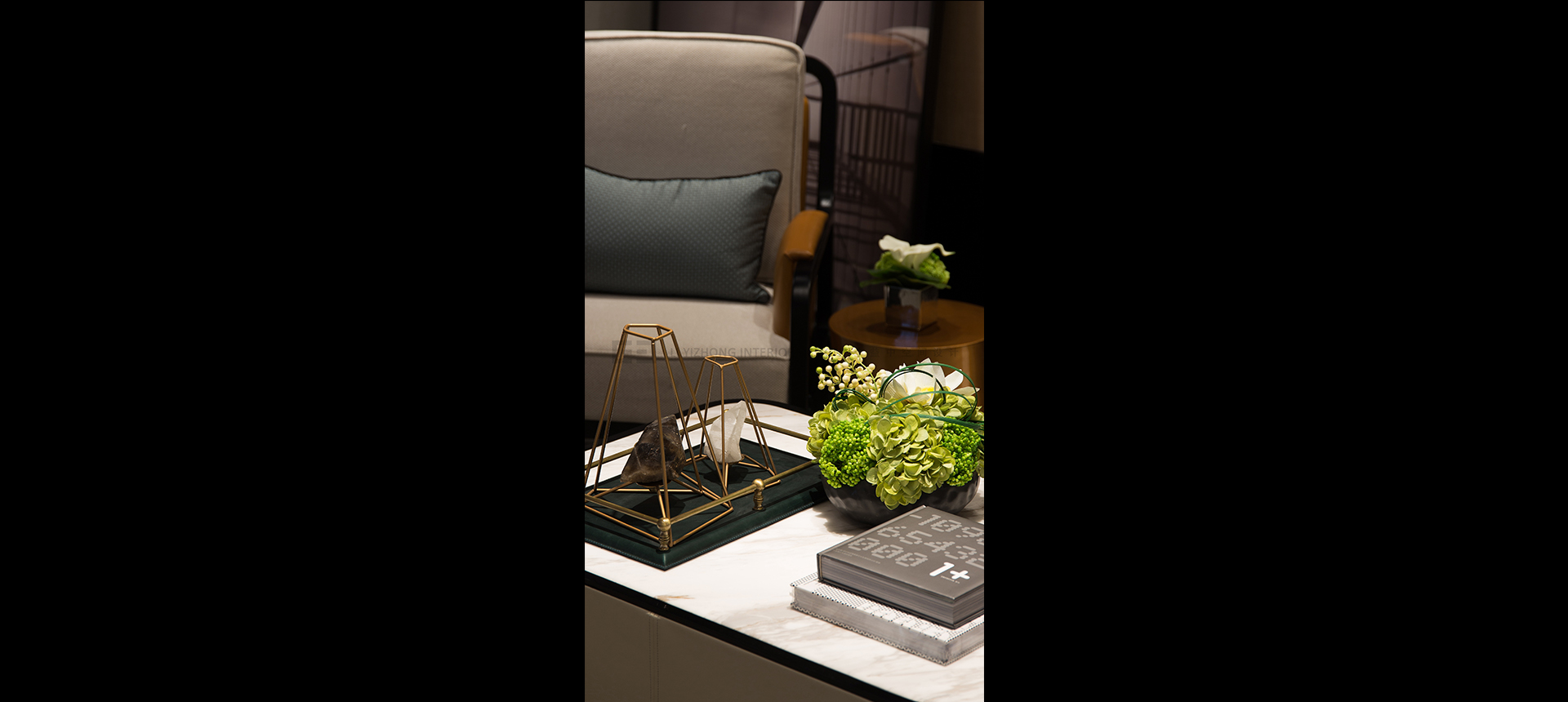 我们通过简洁干练的界面,不同大块面材质的运用,去丰富空间的层次感,体现整体的艺术氛围。同时,我们搭配品牌家具,选用高端的物料,在保证舒适度的同时,以不同的形态去提升品质感,再用一定的低饱和度色彩去界定个性,通过精致的艺术品活跃空间精神层面上的表达。