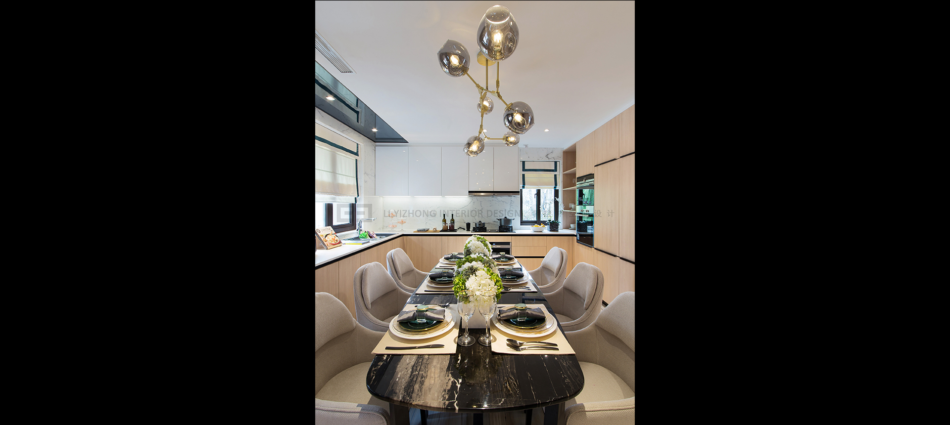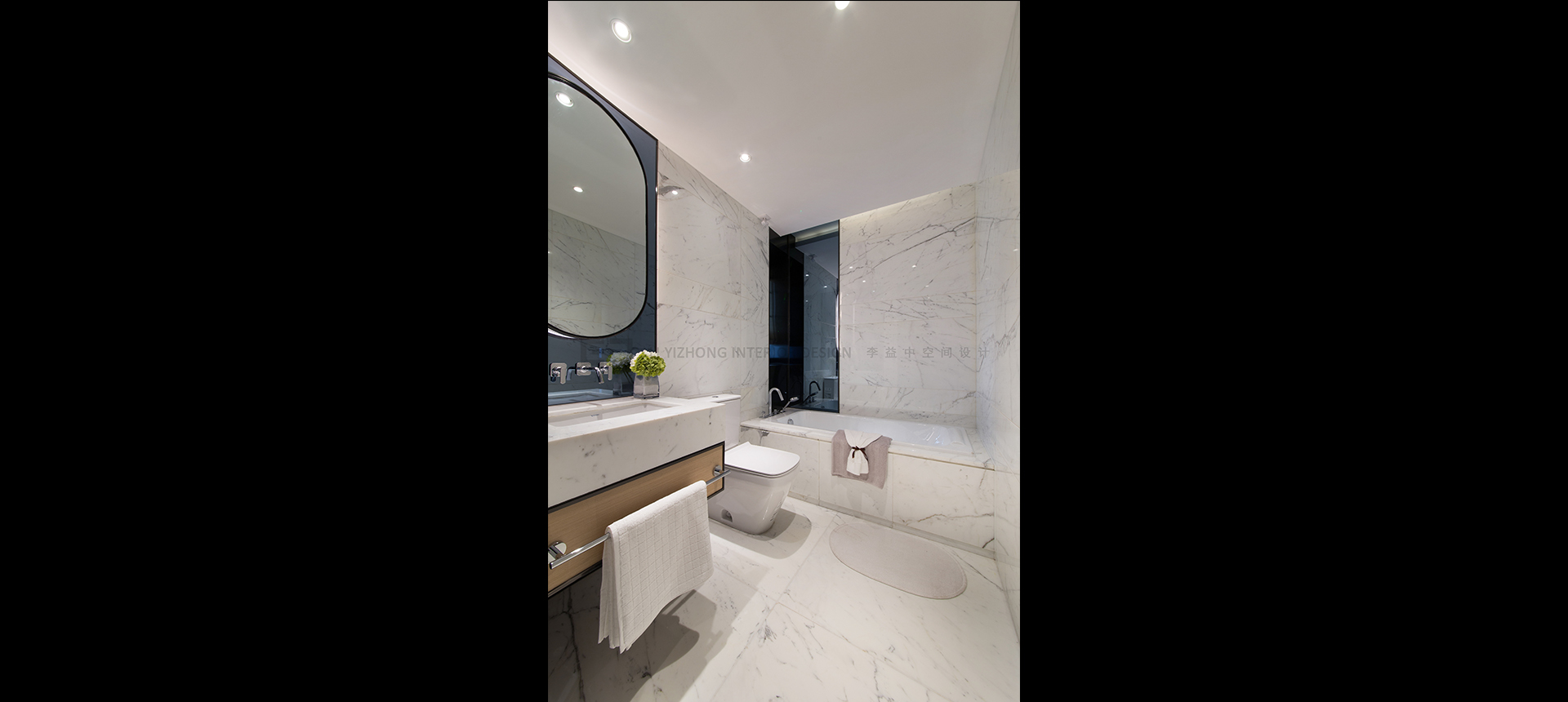 Materials: Statuario Marble, White Galaxy Marble, Eurasian Wood-Grain Marble, Persian Waves Grey Marble, Black Marquina Marble, Silver Mirror, Toughened Glass, Art Glass, Wood Finish, Wooden Floor, Black Wire Drawing of Stainless Steel, Copper Wire Drawing of Stainless Steel, Wallpaper, Cloth Art and Hard Fabric