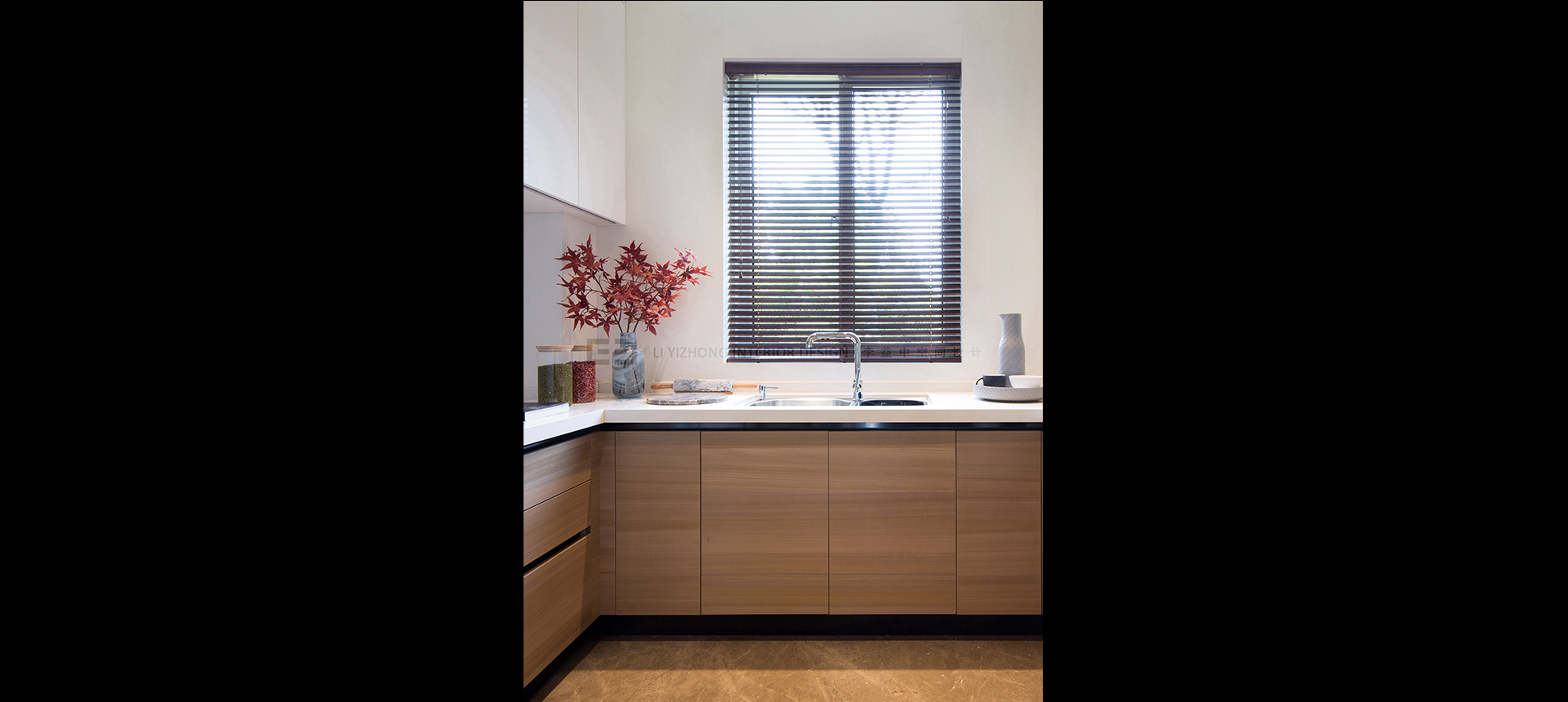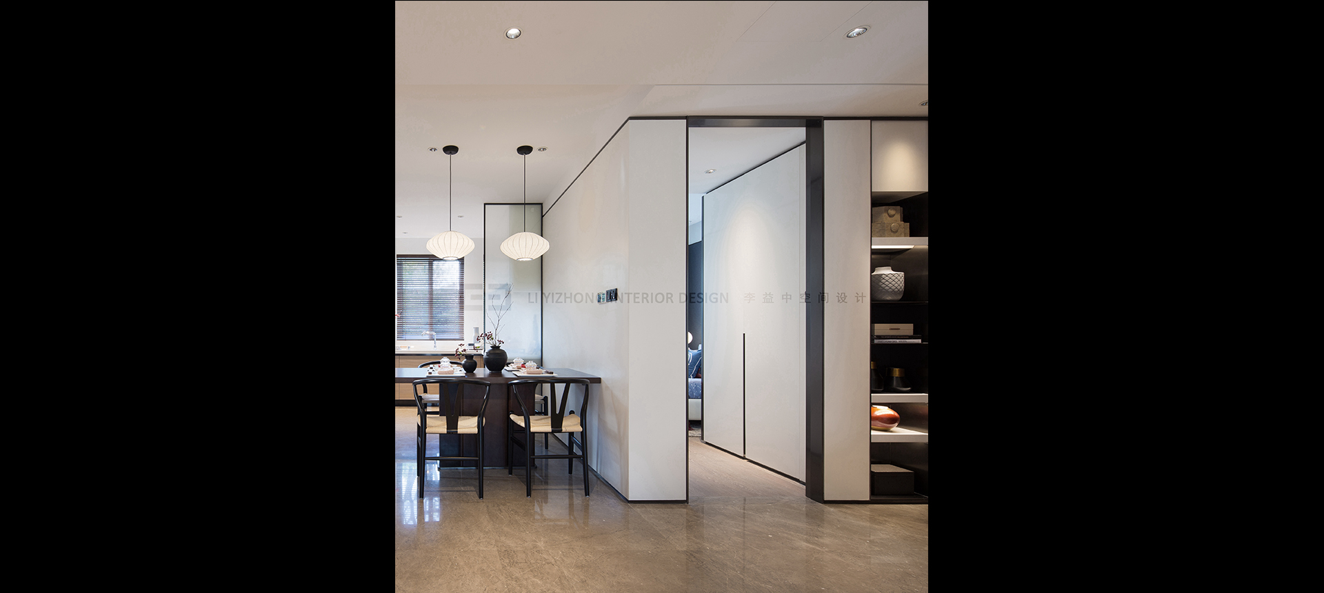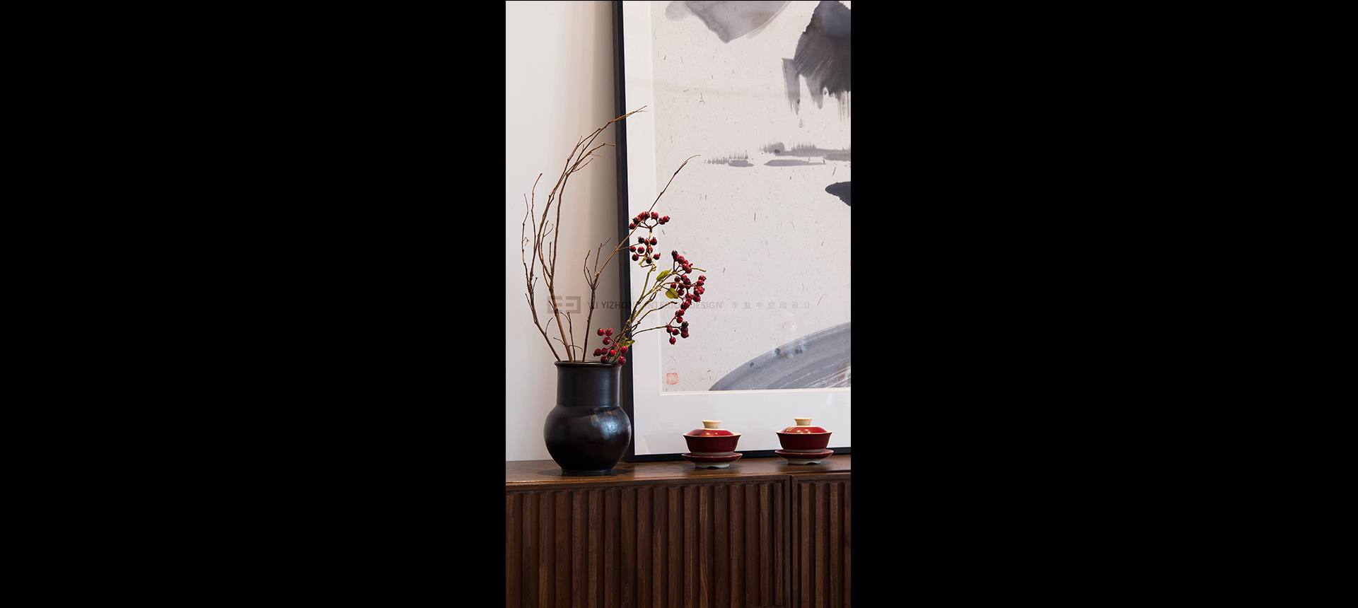 在色彩搭配上,我们采用了大量留白的形式,在整个色彩素净的空间内融入不同漆面的木色和水墨元素。