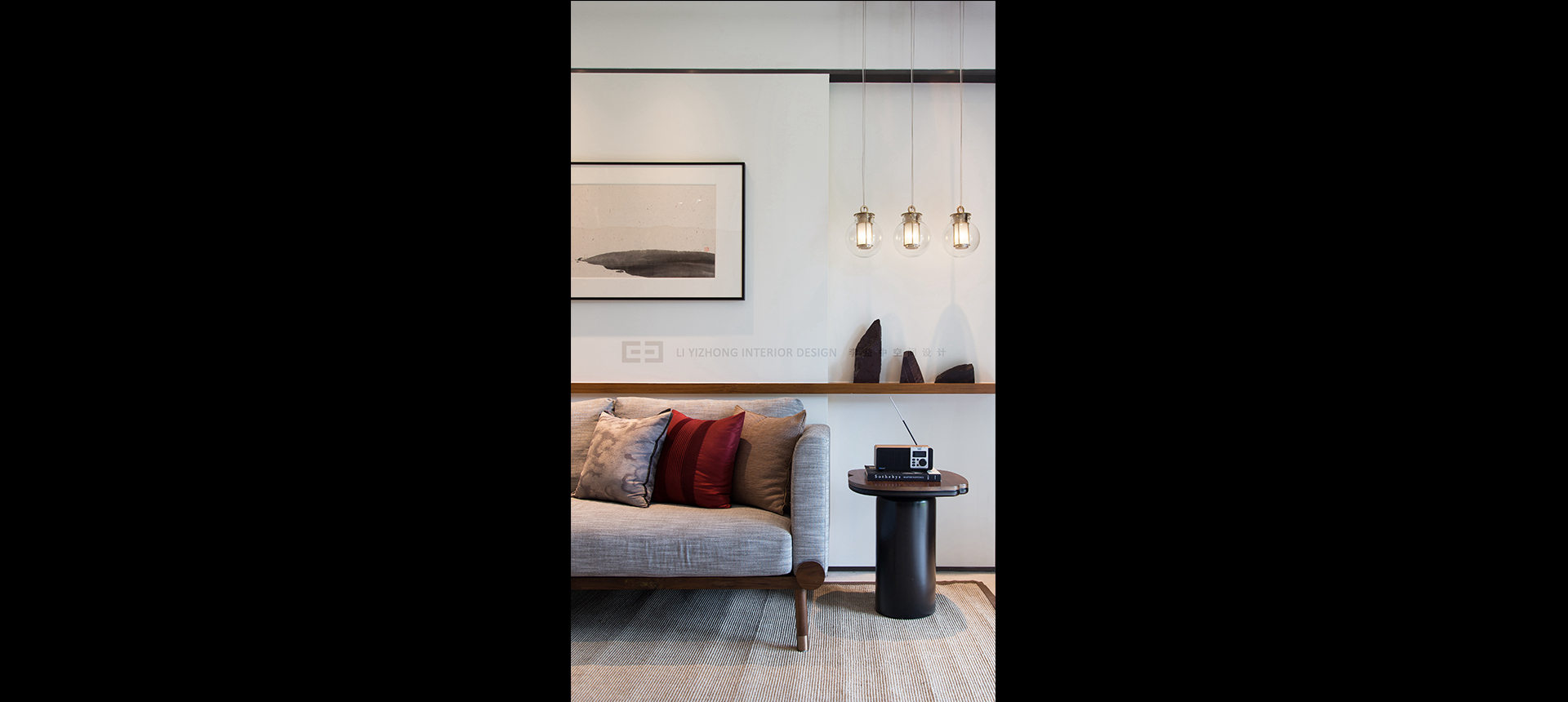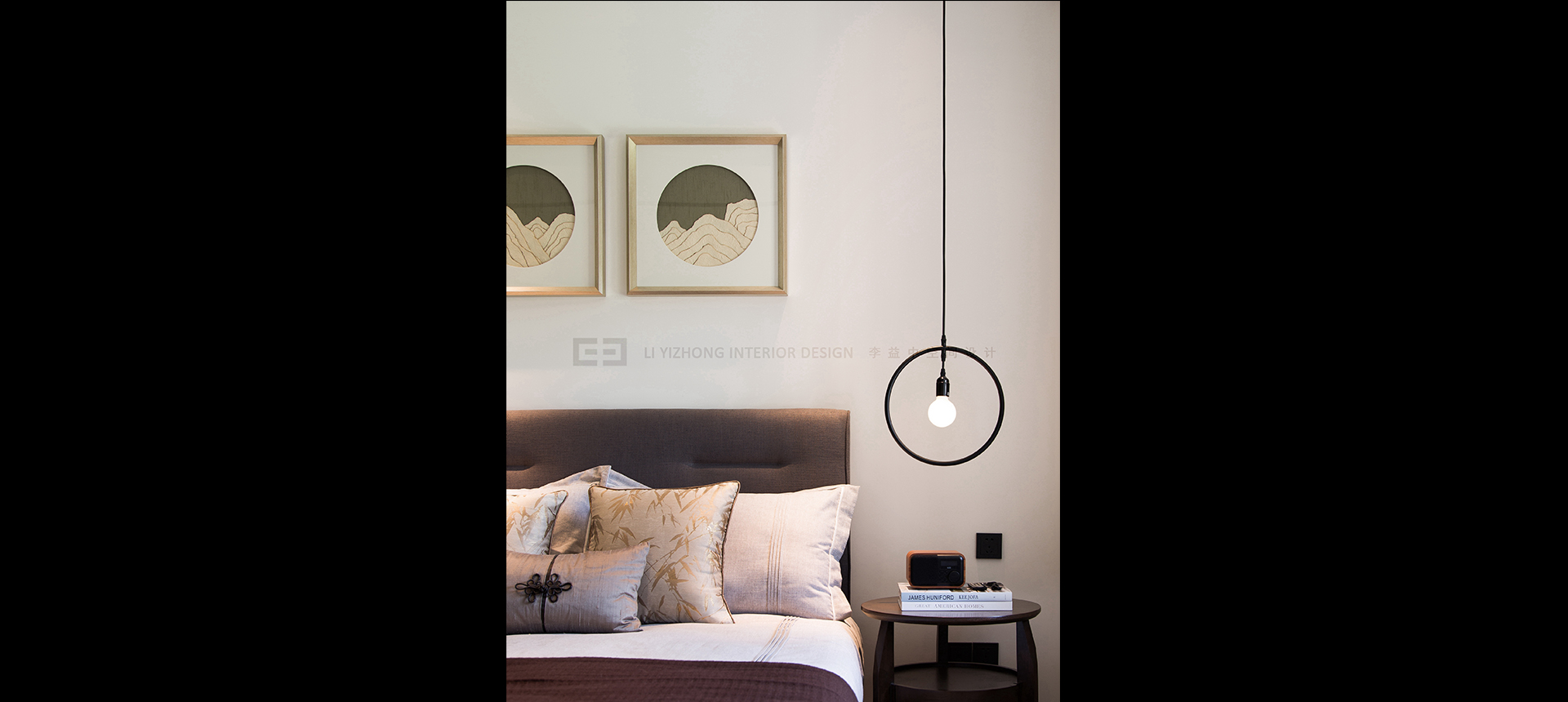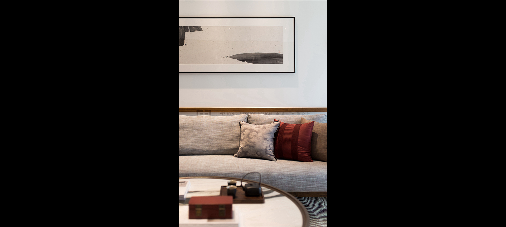 在陈设设计上,我们则利用不同灰度的棉麻布艺和皮革,再运用一系列写意山水做点缀,使得空间的材质丰富多彩,又不失东方的清新素雅。