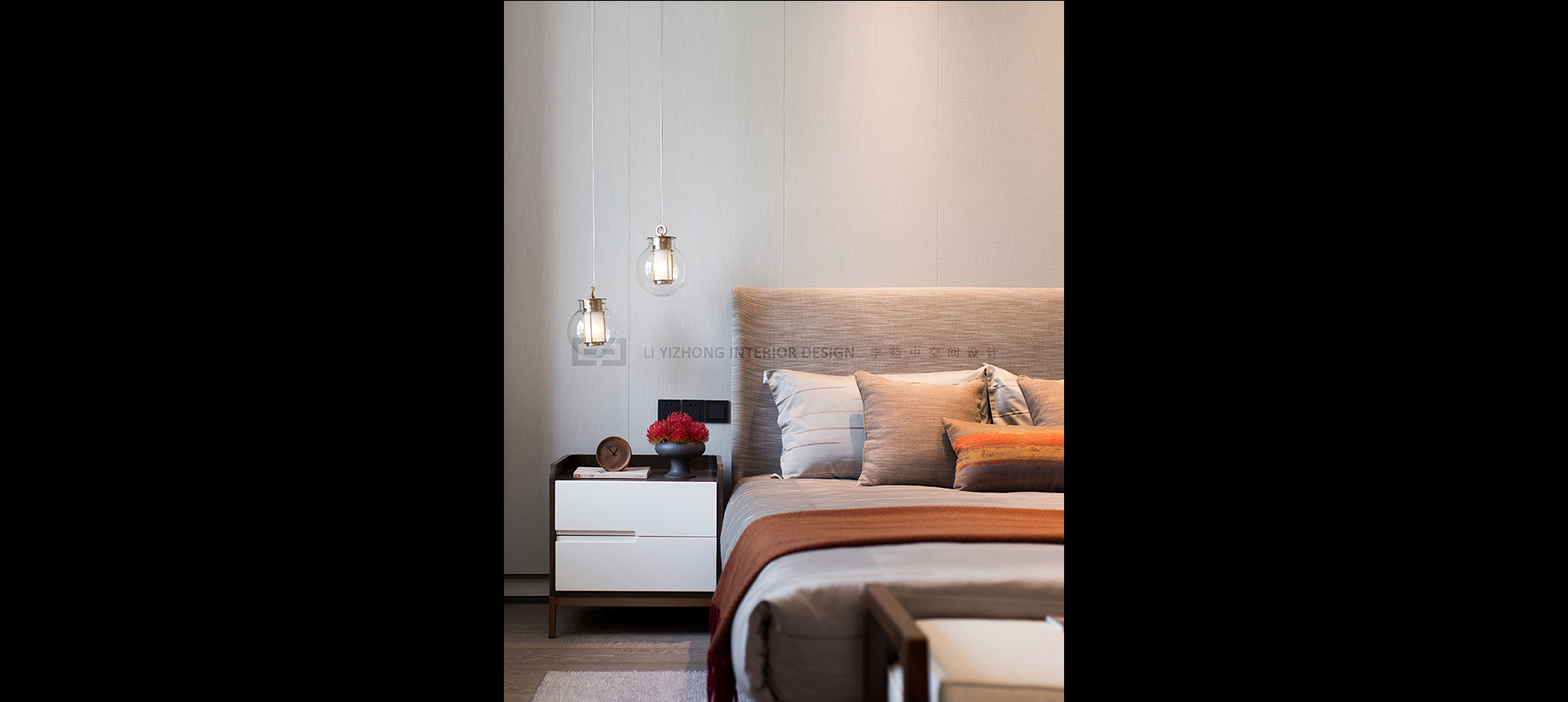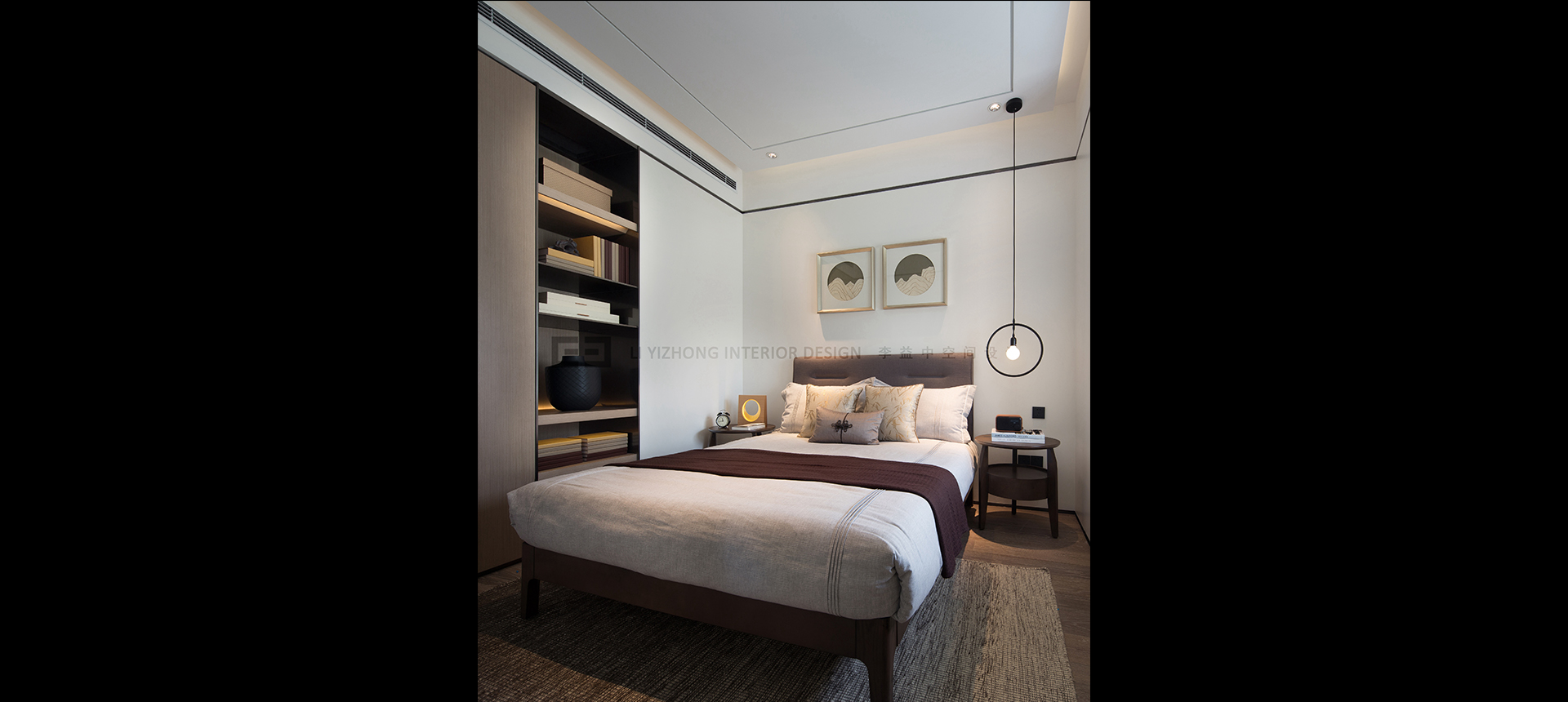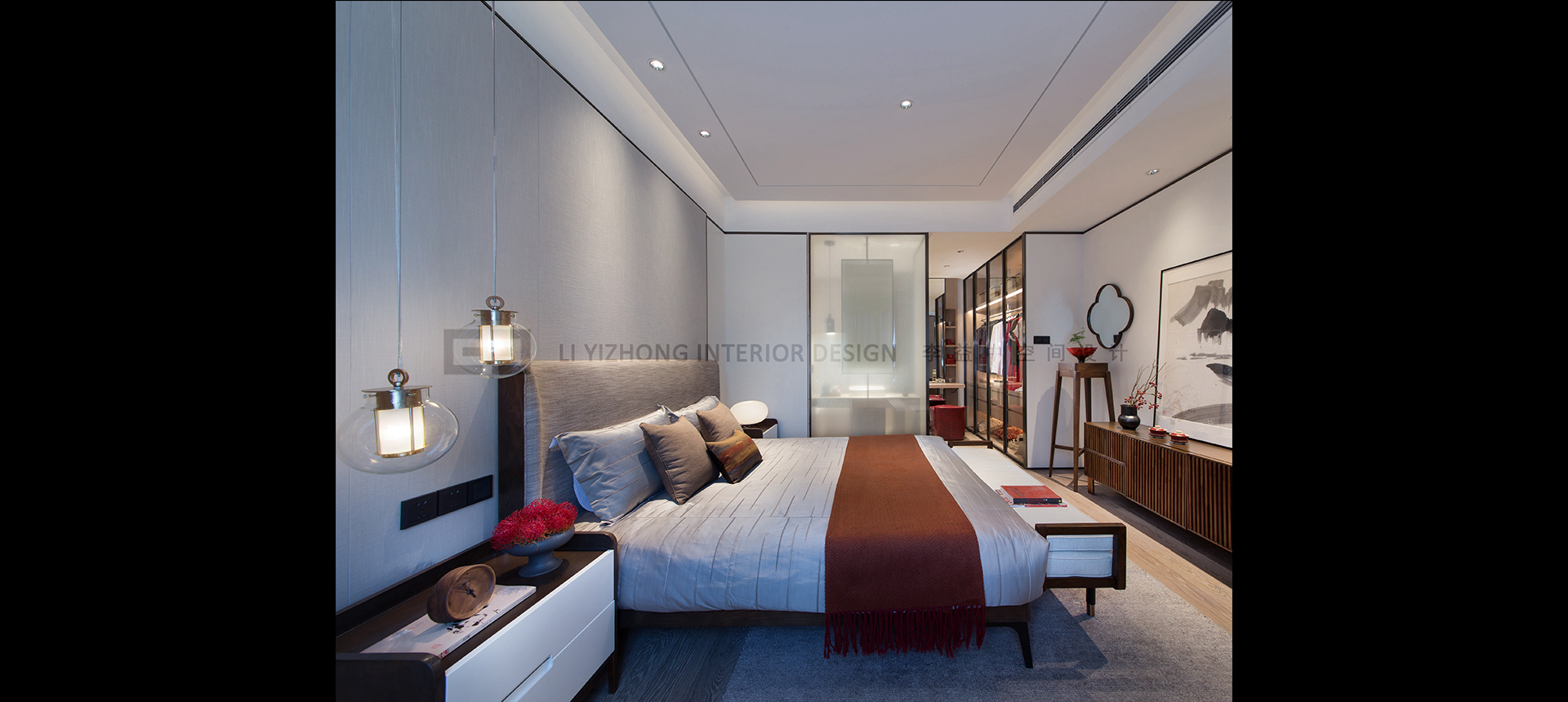 在陈设设计上,我们则利用不同灰度的棉麻布艺和皮革,再运用一系列写意山水做点缀,使得空间的材质丰富多彩,又不失东方的清新素雅。