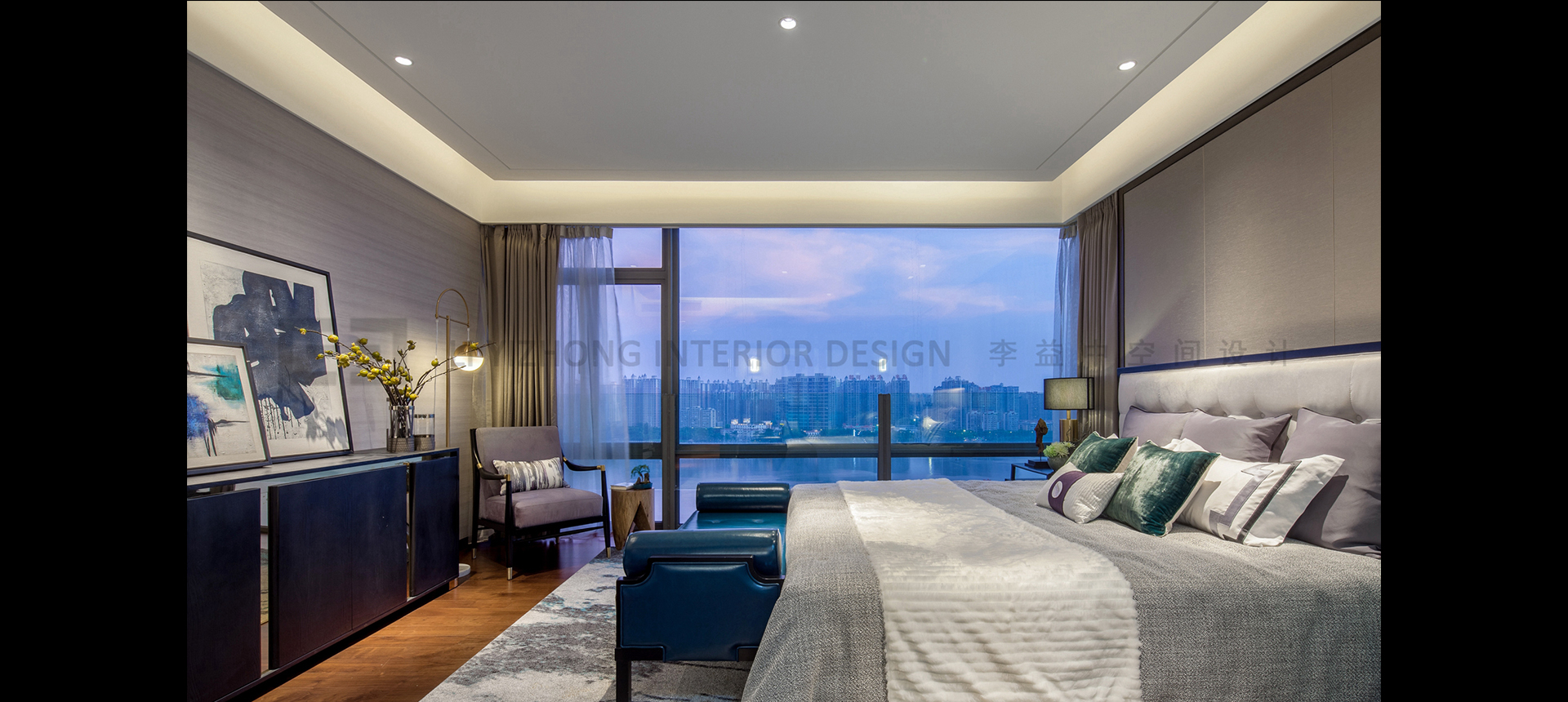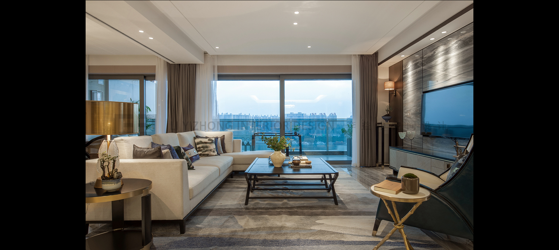 落地玻璃窗开阔玻璃幕墙的视野,最大程度地将江景引入室内,我们的灵感源于北江水流线形的现代风格造型,与江水相呼应。