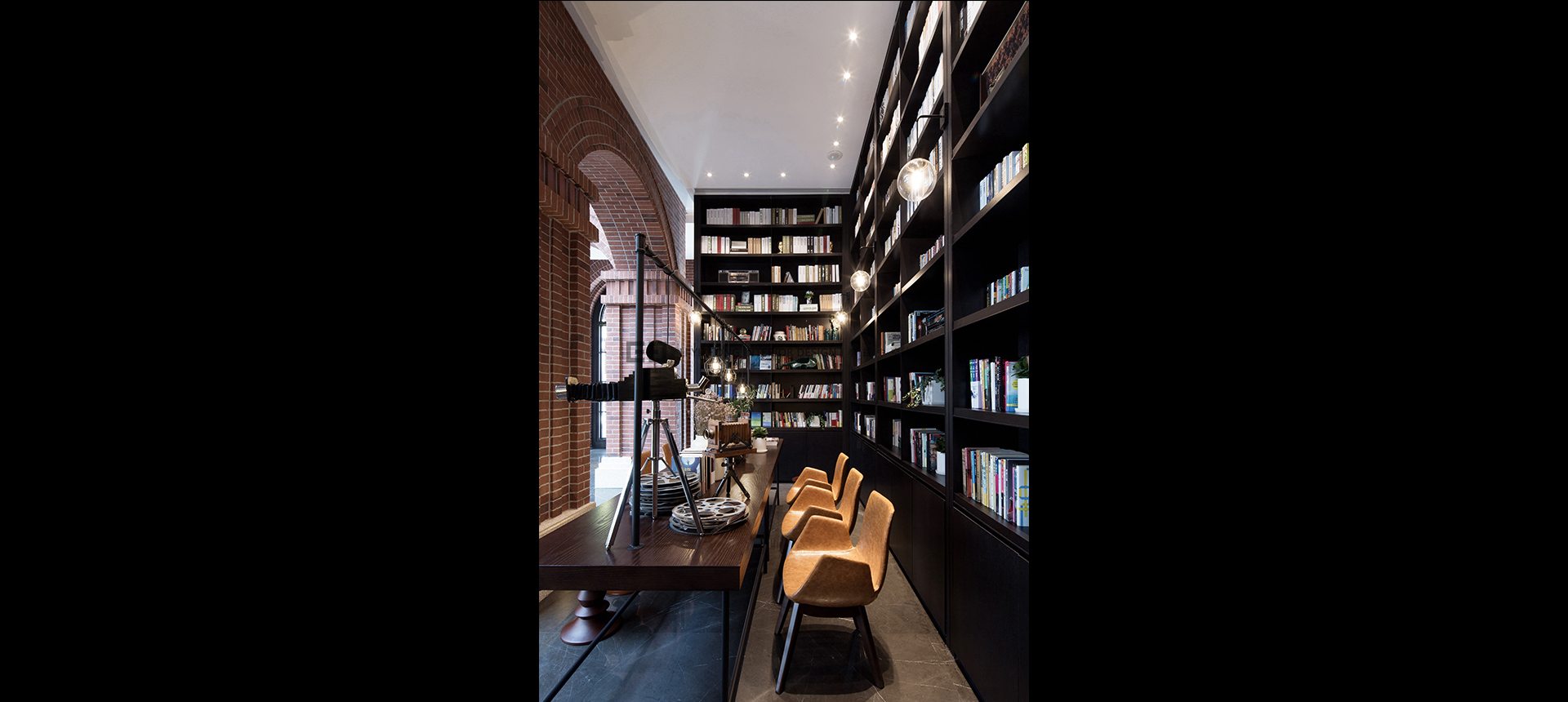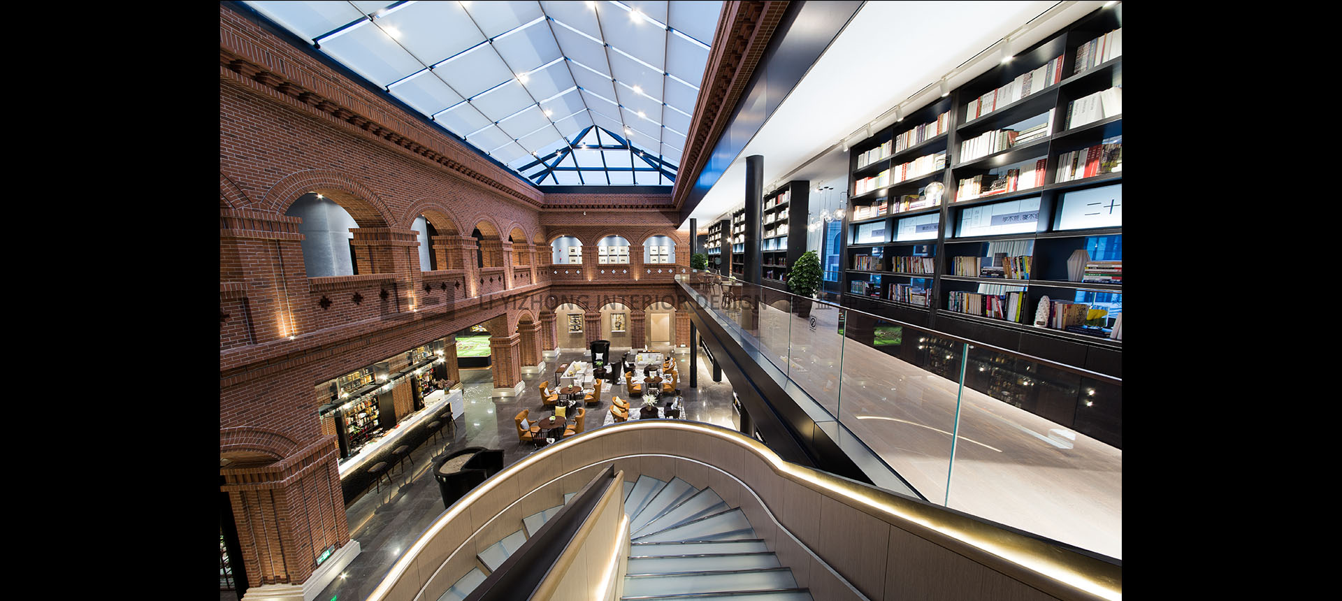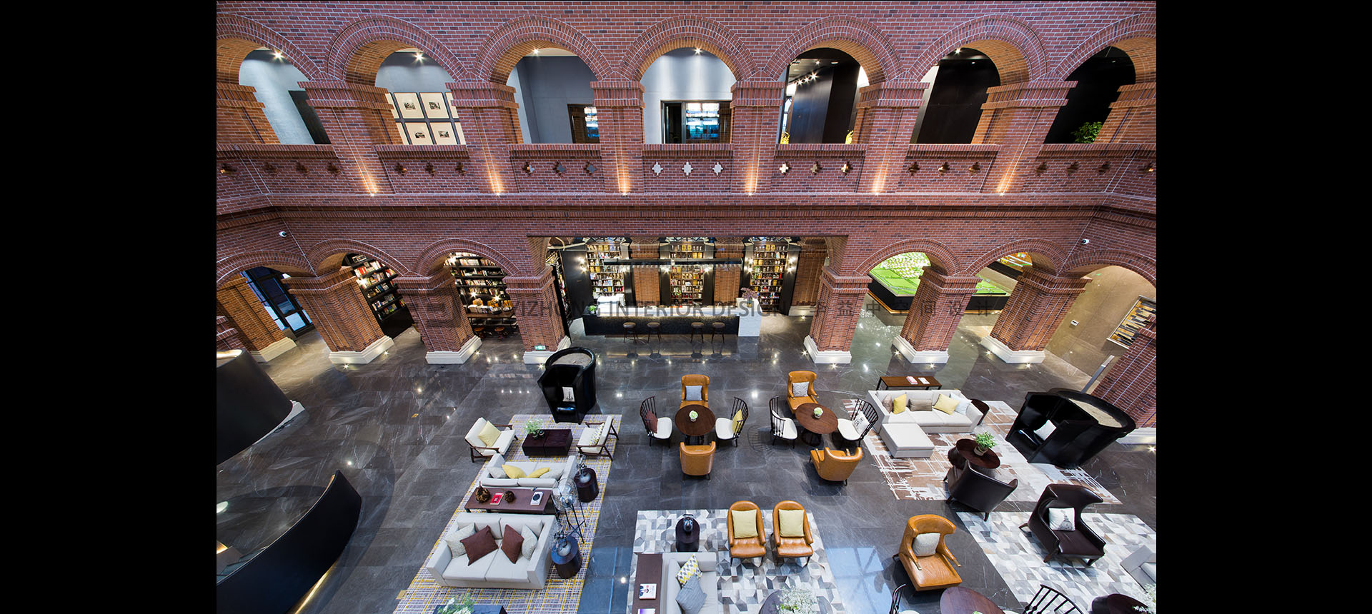 本案要呈现的是一种美国大学的图书馆的味道,贯穿中庭的书架,随处可见的阅读桌,尺度宜人的阅览间,教育主题的艺术挂画及雕塑等。
