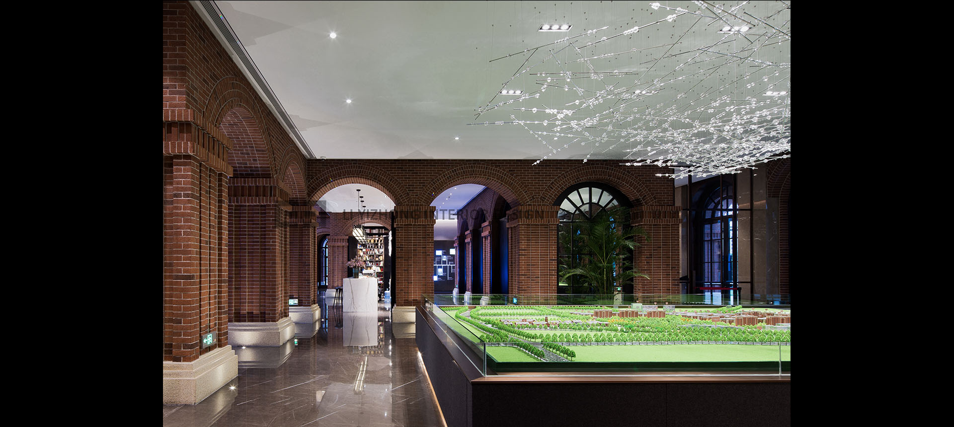 室内设计构思与建筑设计师同步进行的。经过研究建筑规划,我们提出空间布局建议:注重空间的抑扬节奏,利用行走动线把社区的环境卖点呈现出来,在游走的空间体验中让客户感知社区特色。