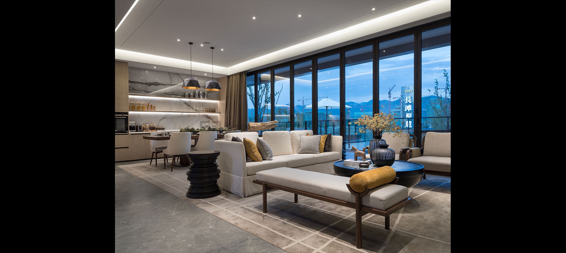 重庆龙湖·两江長滩原麓室内设计就是围绕这样“有质量的交流空间”展开的,包括了一层的客厅、餐厅、户外平台以及负一层,而负一层是这个设计的关键。