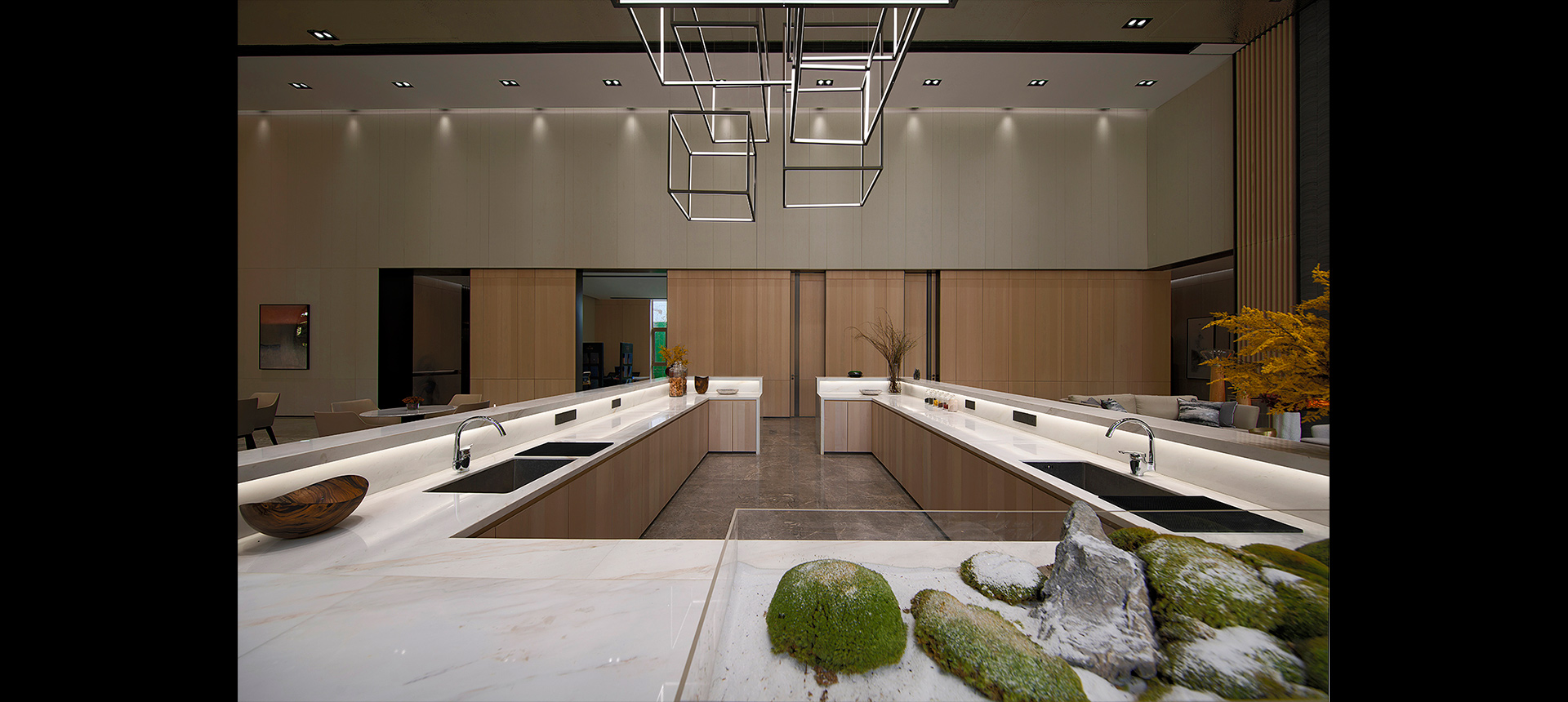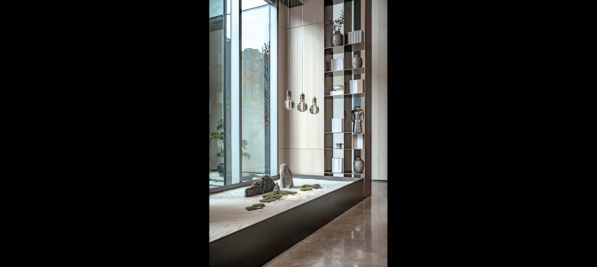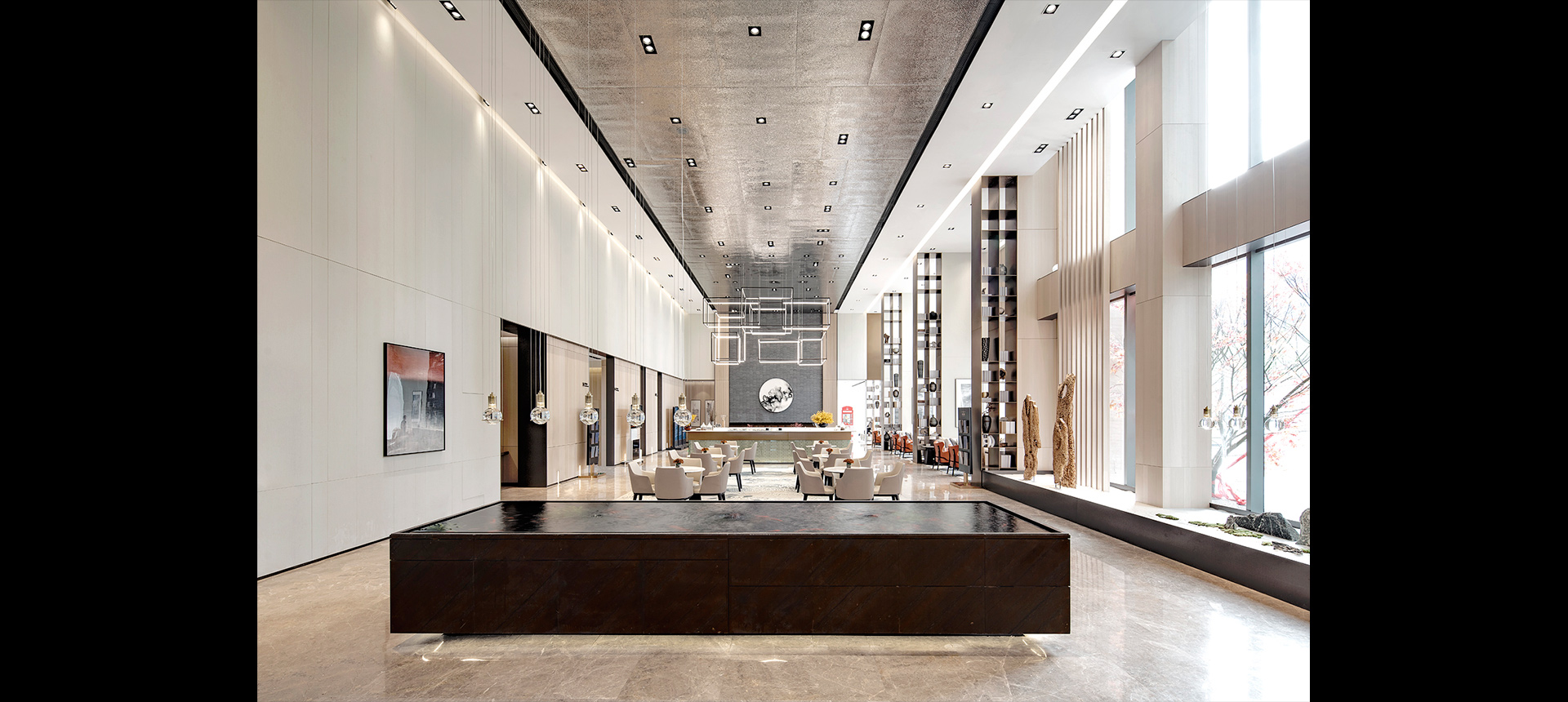 设计师探索了售楼空间全新的意识维度,以现代设计的简练笔触,给东方式的静穆增添时代性的内涵,继而回归生活的本心。