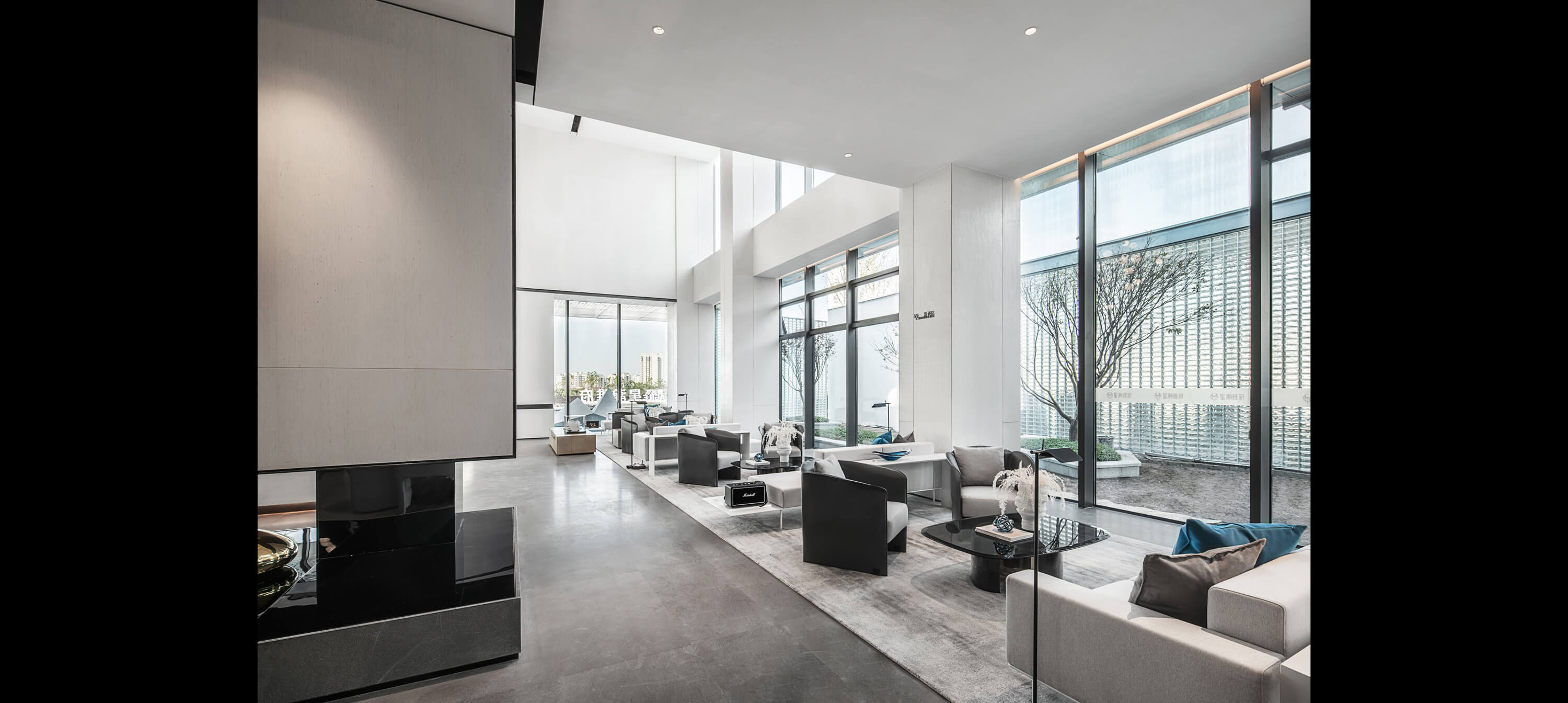 重庆雅居乐·星瀚雅府展示中心,李益中空间设计追求纯粹的设计精神和室内外空间的无缝对接。ChongQing Agile xinghanyafu Sales Center, LIYIZHONG & ASSOCIATESassociates pursue pure design spirit and The connection between indoor and outdoor Spaces.