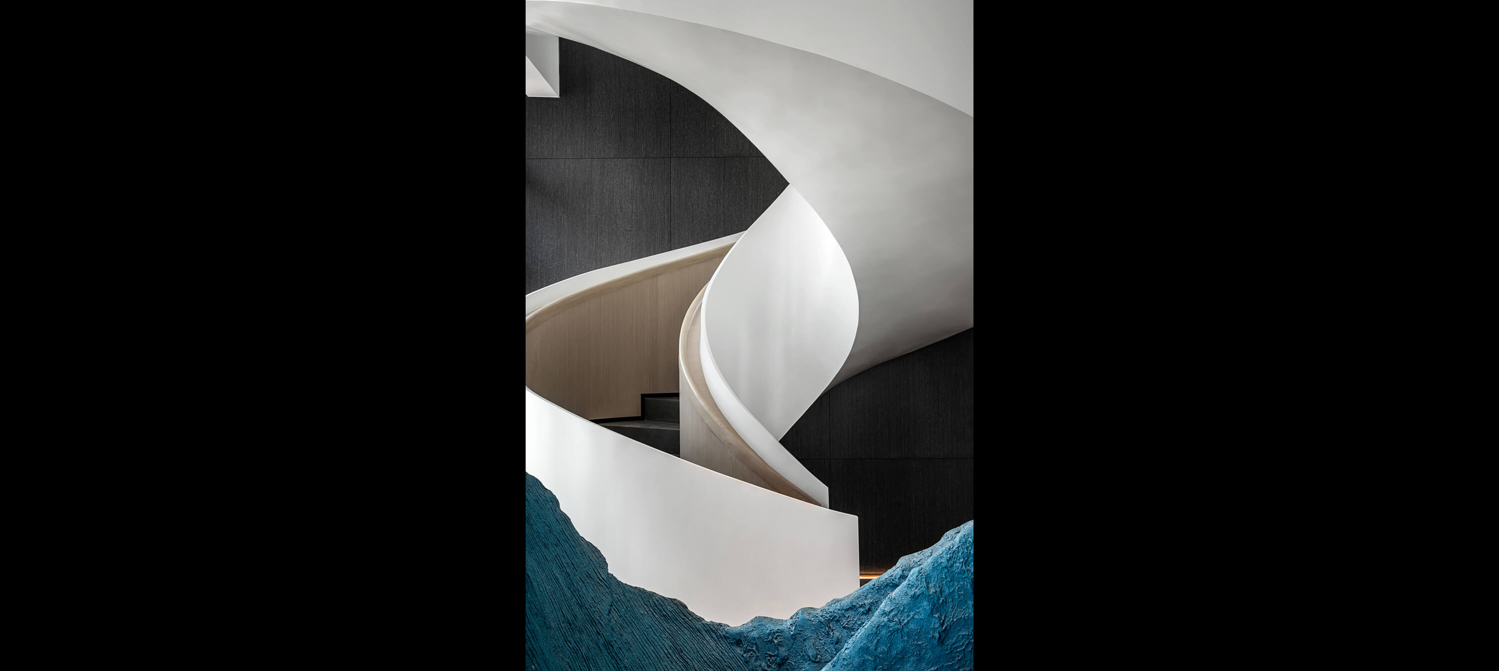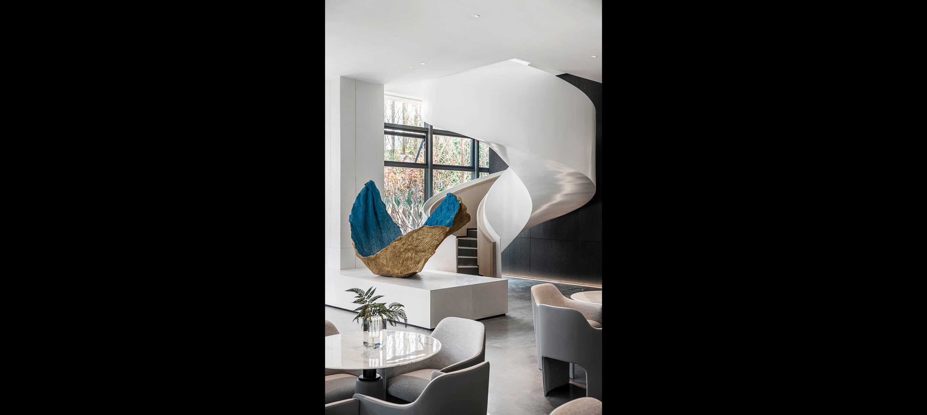 旋转楼梯与艺术装置是舞动的“精灵”,造型和线条展现力量与灵动。艺术品为空间的空白填补想象,在具象与抽象之间,传递价值。Works of art fill in the space of the imagination, betweenthe concrete and abstract, transfer value.简洁的表现手法,