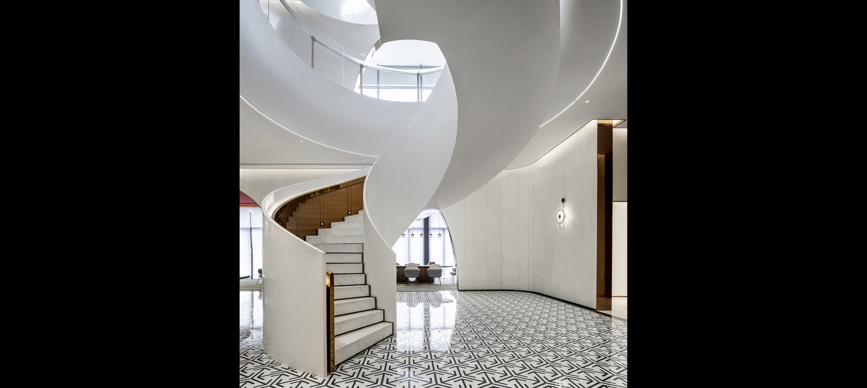 正如柯布西耶所说:“基于秩序的原则,这才是自由。”李益中在旋转楼梯上的艺术表达,不仅是基于策略性而营建的空间亮点,更是一种功能与秩序、自由与线条达至平衡的状态。目之所及的曲折,移步异景的蜿蜒,如此富有艺术张力的自由之境,定格在设计师笔下,亦停格在来访者的相机之中。