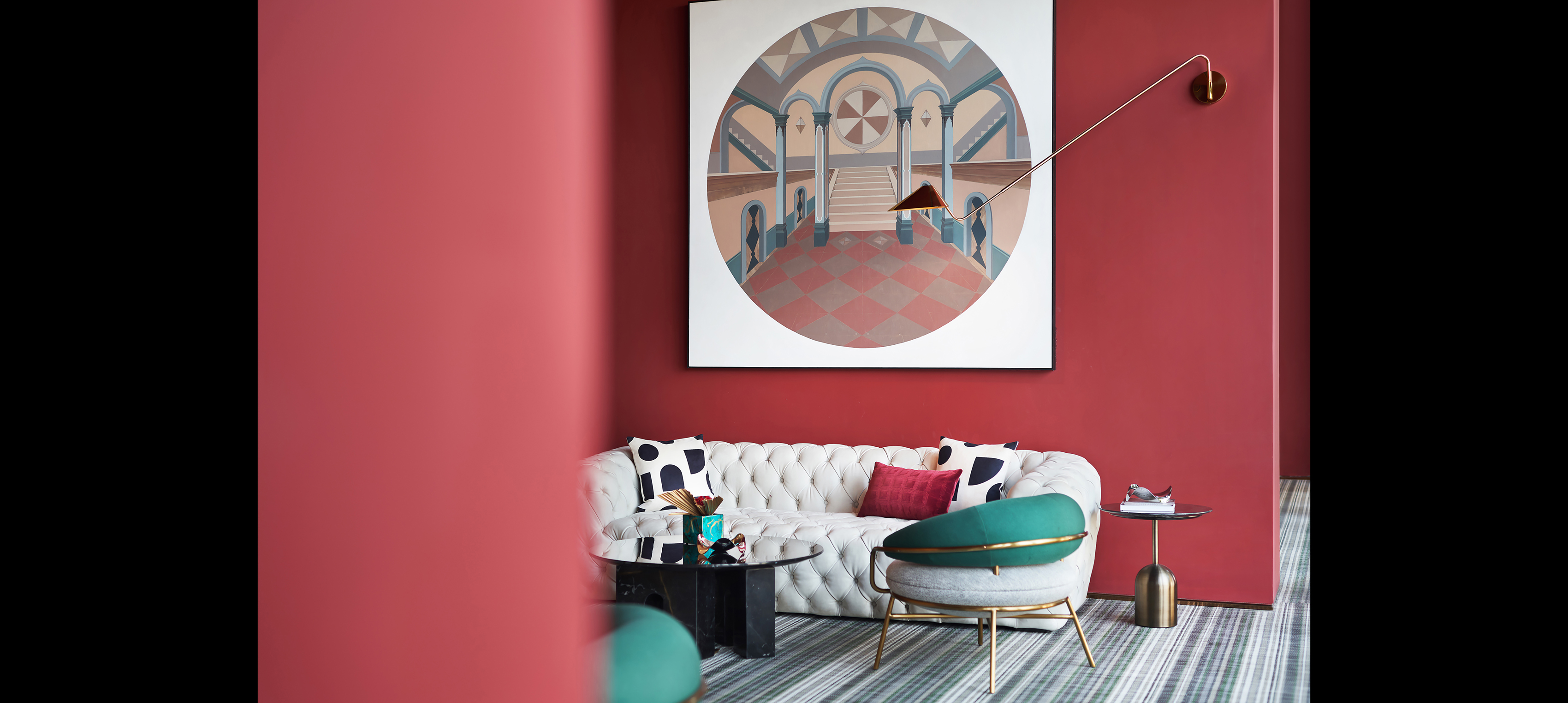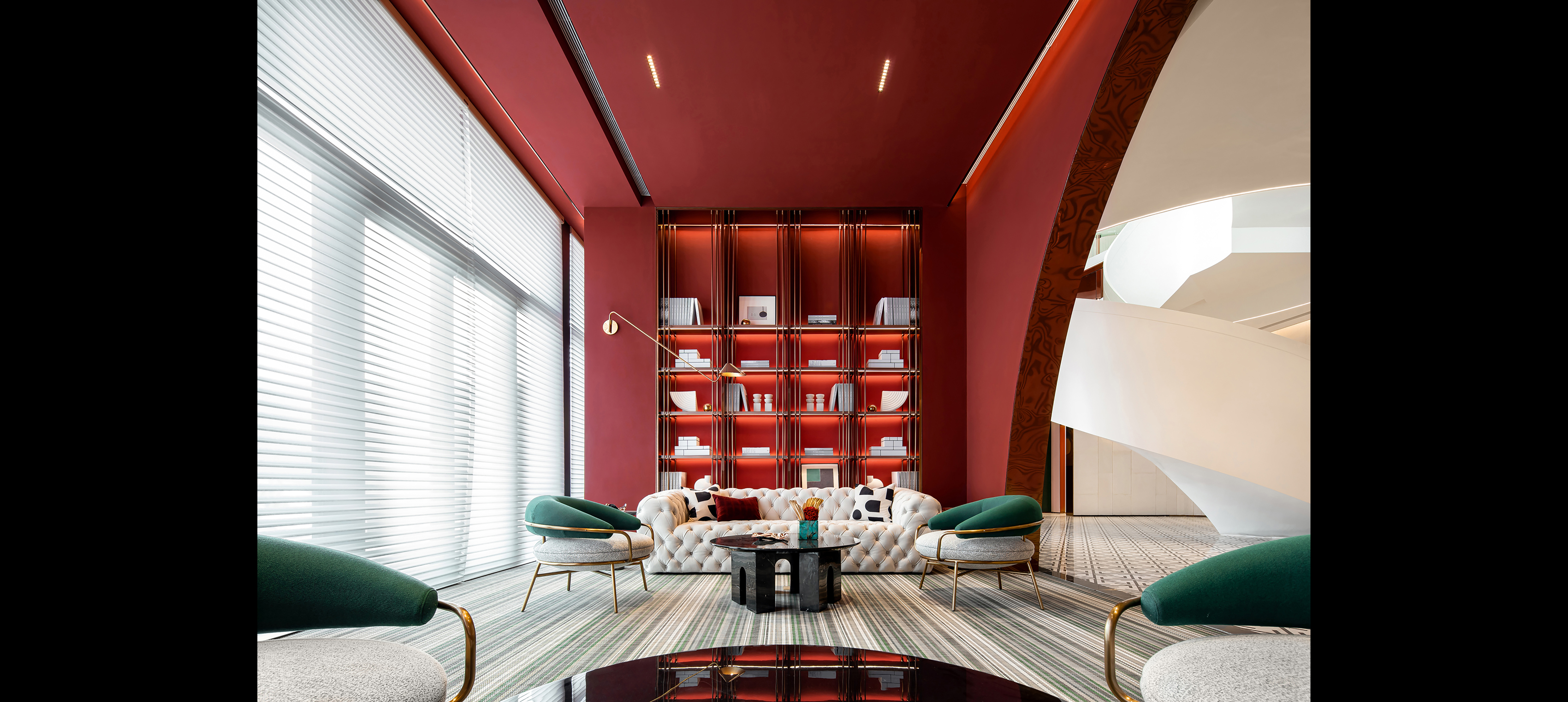 设计师塑造空间氛围的关键,在于克制的细节、审慎的美学、自由的艺术形式。对绿色恰到好处的运用,是设计师对古树树影的抽象化延伸,与红色相得益彰,二者共存于某种基于美学尺度与拍照比例的光影之中。