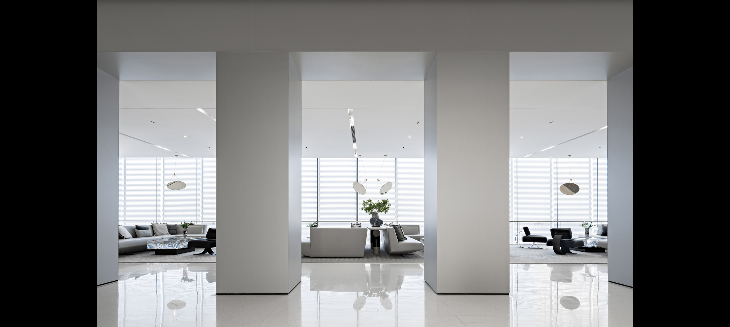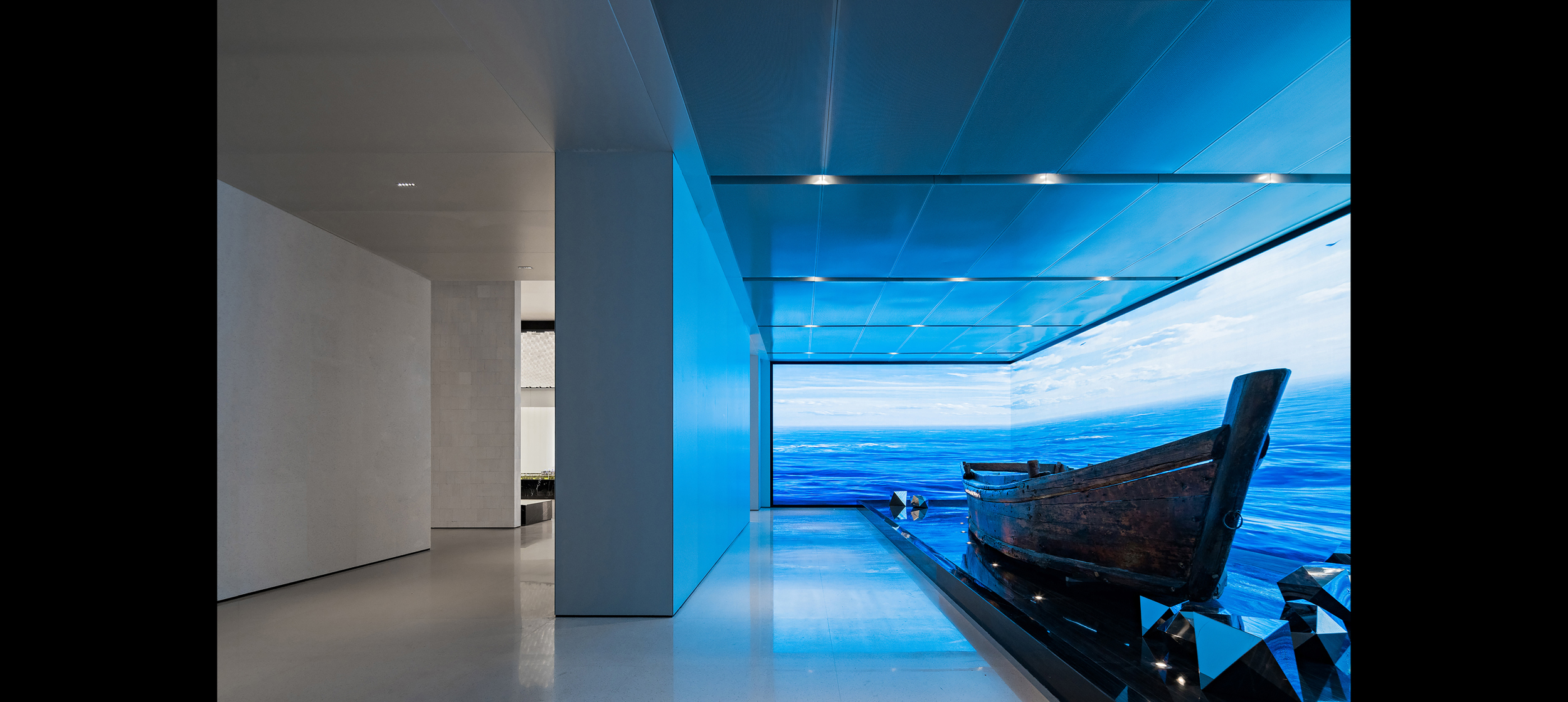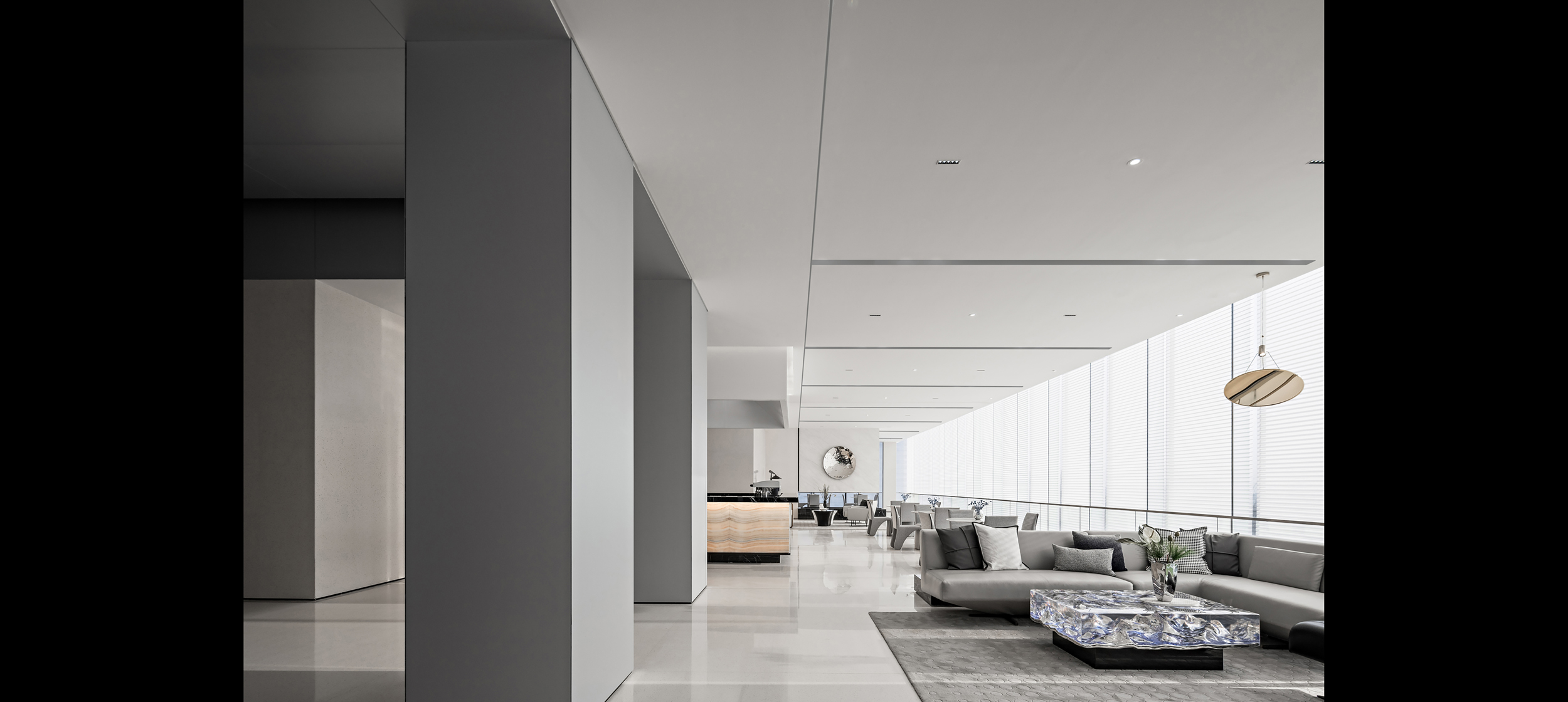 本案便以此为出发点,李益中空间设计希望能够缔造出艺术馆的氛围,体现一种“空灵”的界地,俊逸灵动、润雅圆融,用空间艺术去讲述大连湾的人文。