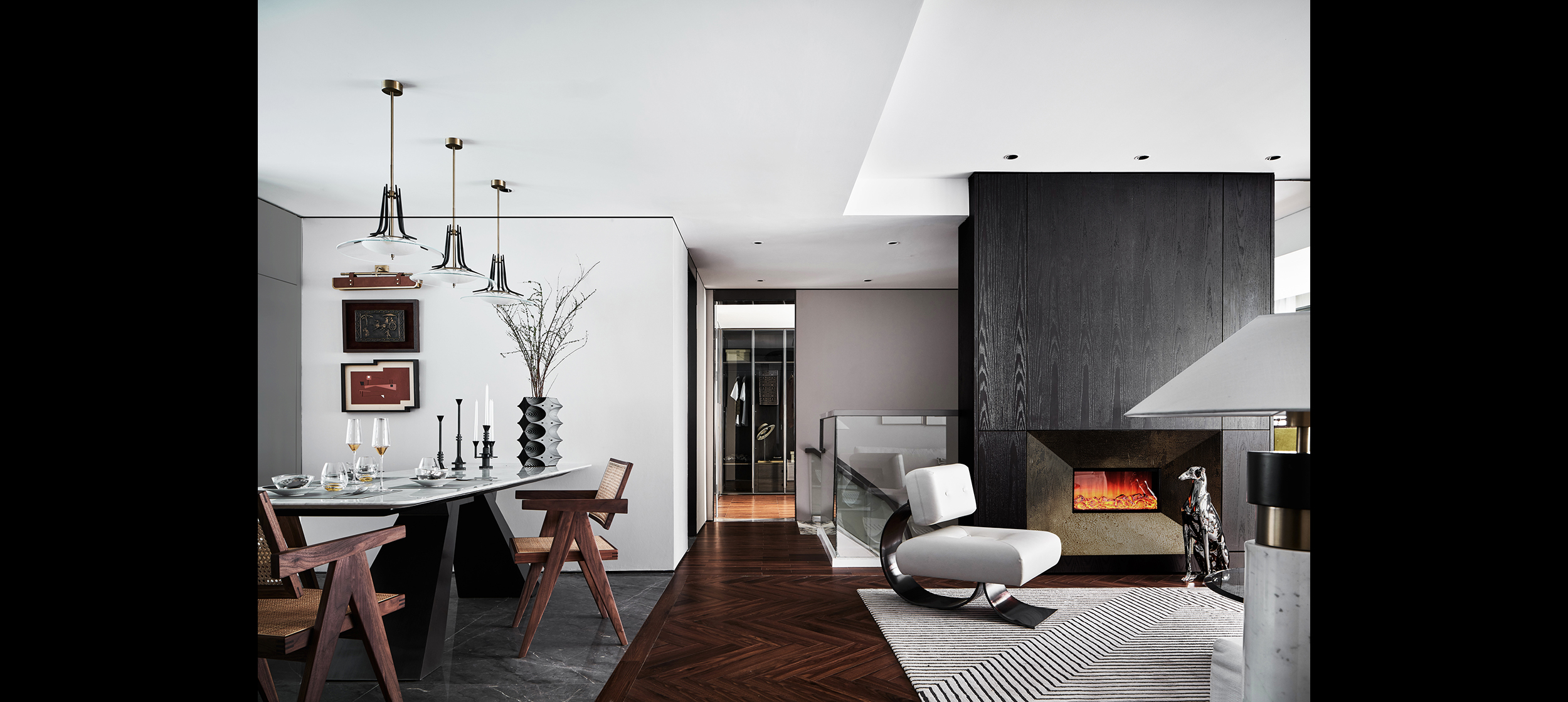 “我一直在寻找一种居住的味道来适合主人的身份,因此空间的格局和成色上是兼收并蓄、海纳百川的,可以是东方的,也是西方的,是历史的,也是当代的,“设计师说。
