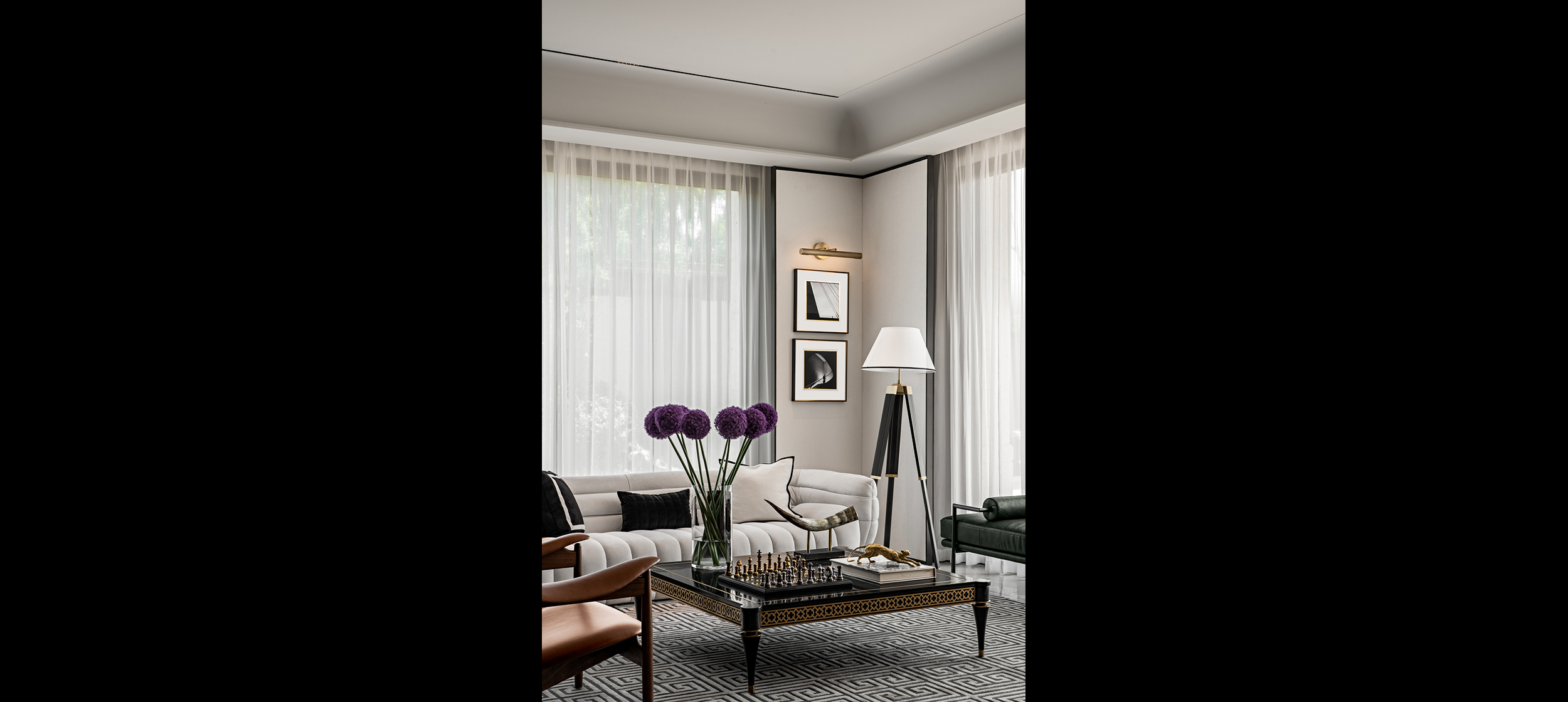 实际上从品牌标签和昂贵材料中并不能完全体现奢华的定义,真正奢侈的是空间、光影和陈设总体所营造出的美好氛围,以及优质的阳光、水和空气,生态的外部环境,这离不开建筑、室内、景观设计的紧密结合。