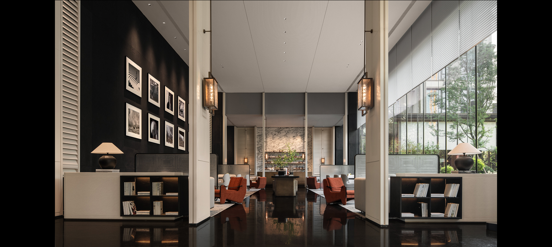 高挑的空间内是仪式和尊贵的细腻传达,层层递进的屏风如线条谱写立体的前序,引导人们通往下一段乐章。空间的立体美感,错落有致的层次,自然地衍生出山城的地理特色。