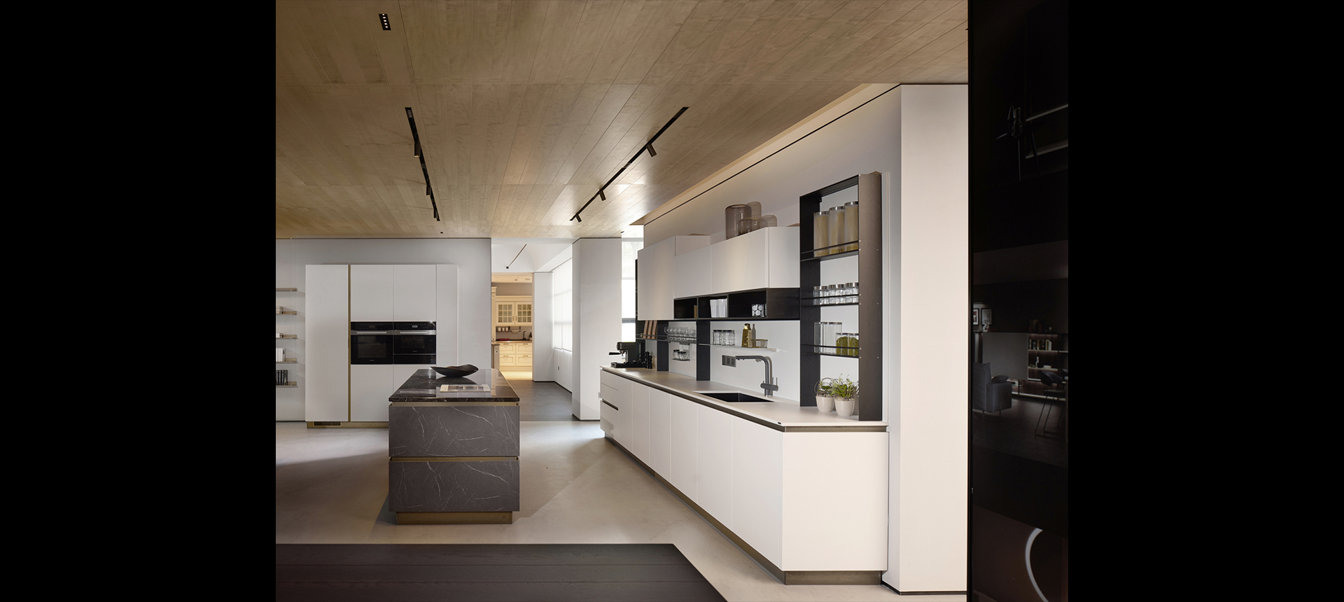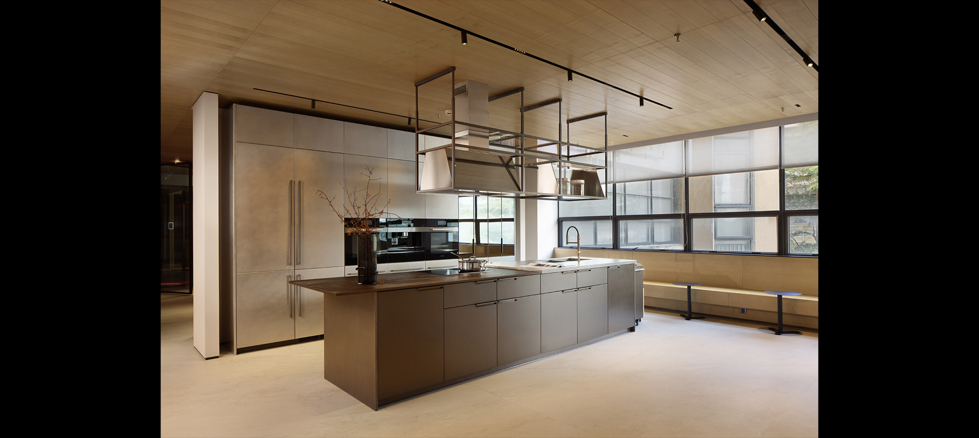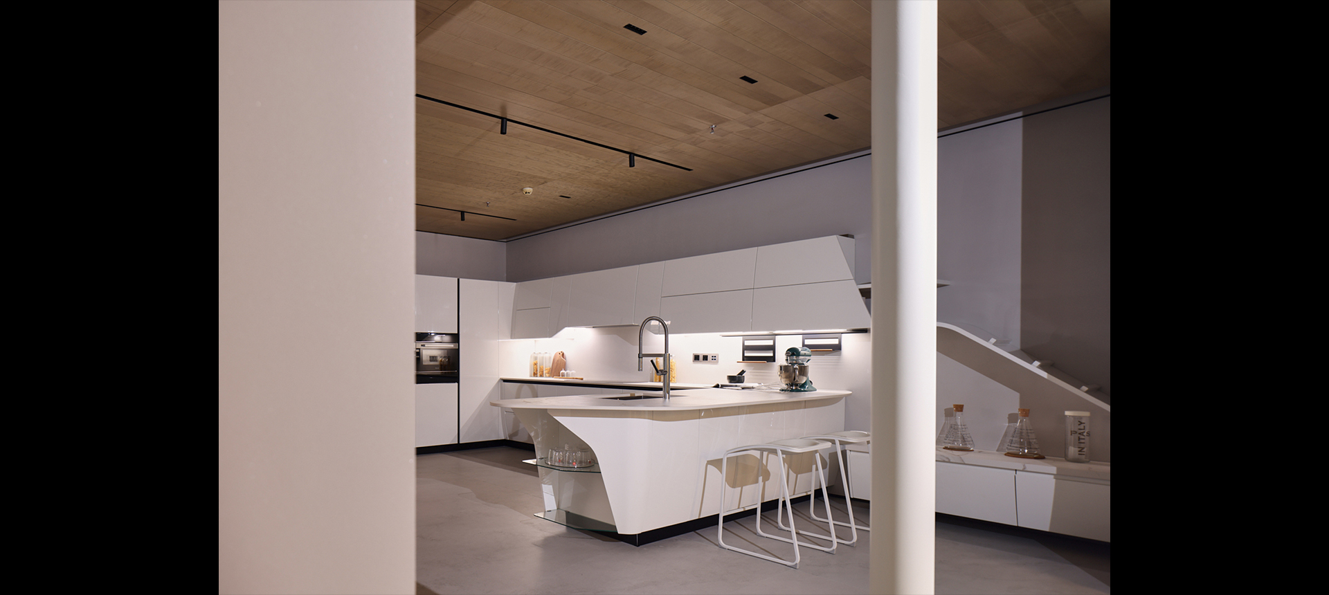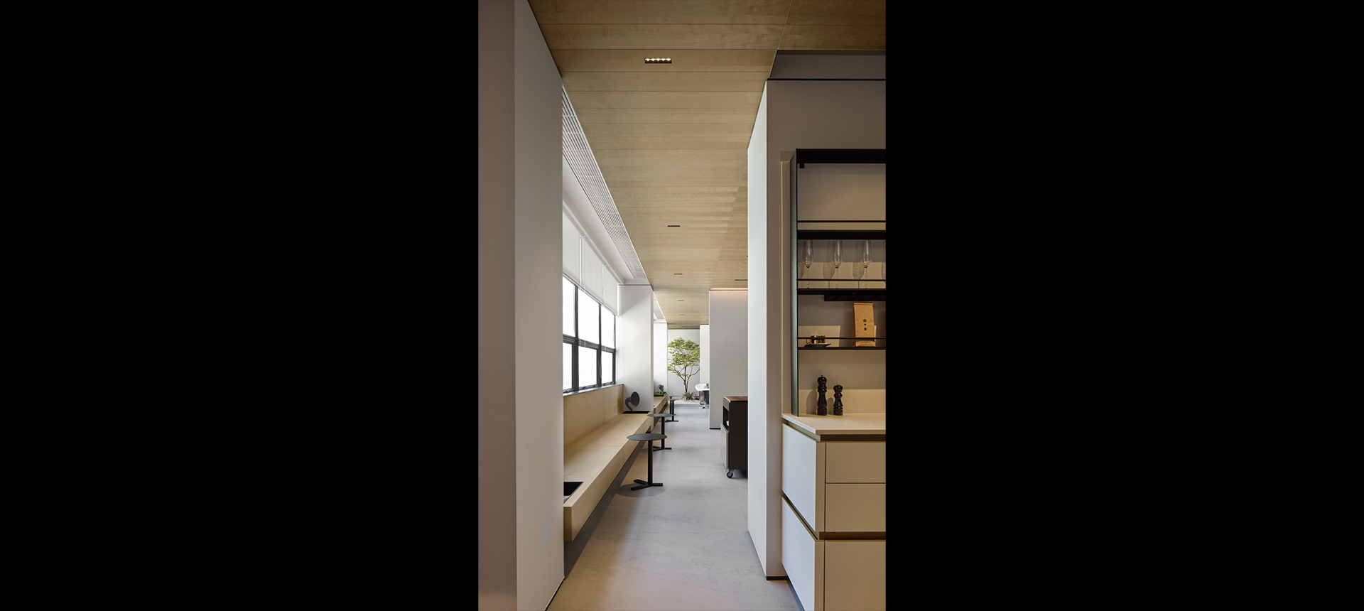 意大利Scavolini(深圳)展厅在空间规划上,设计师将日常的办公场所与展厅部分用隐形玻璃门分隔,彼此相连但相对独立,空间动线分明,互不干扰,以保证展厅空间的创作自由与纯粹性。