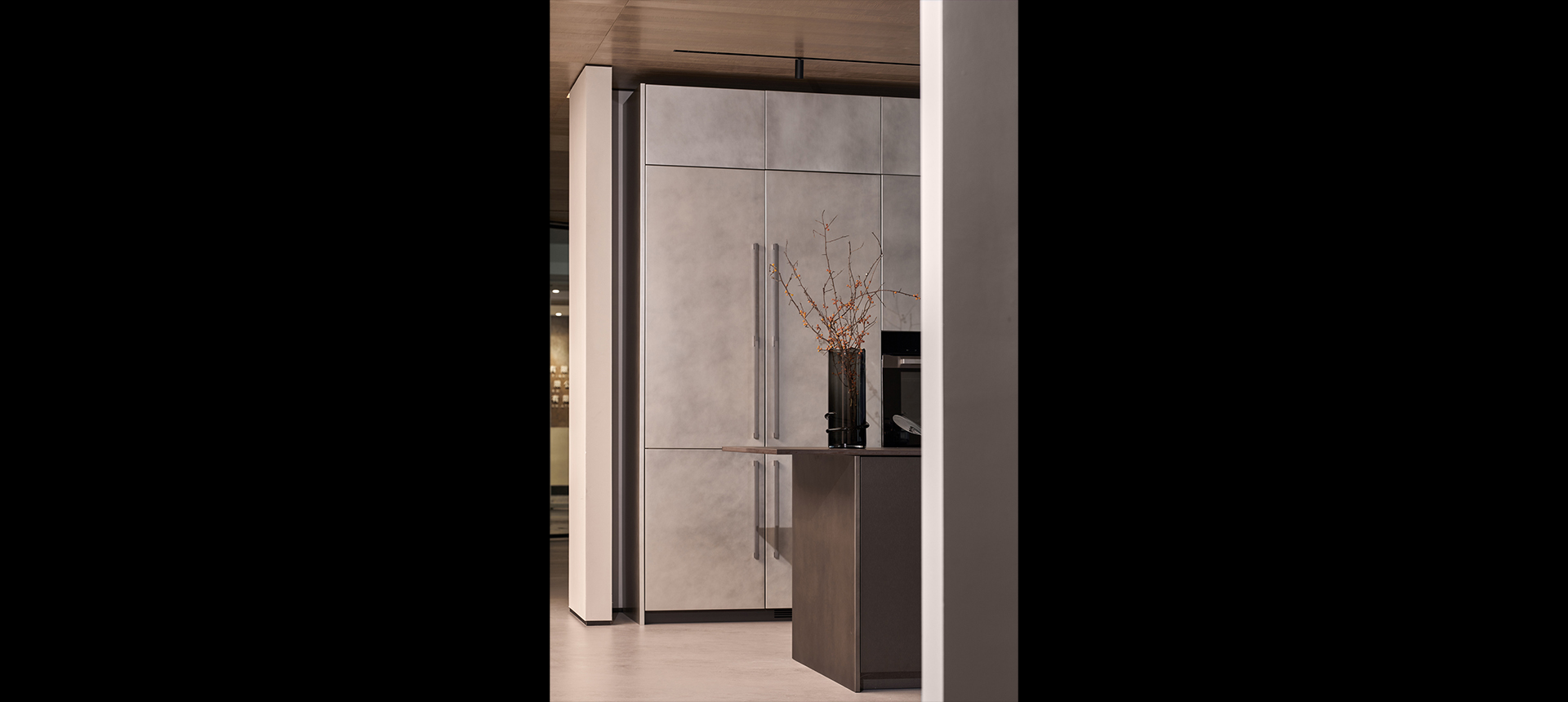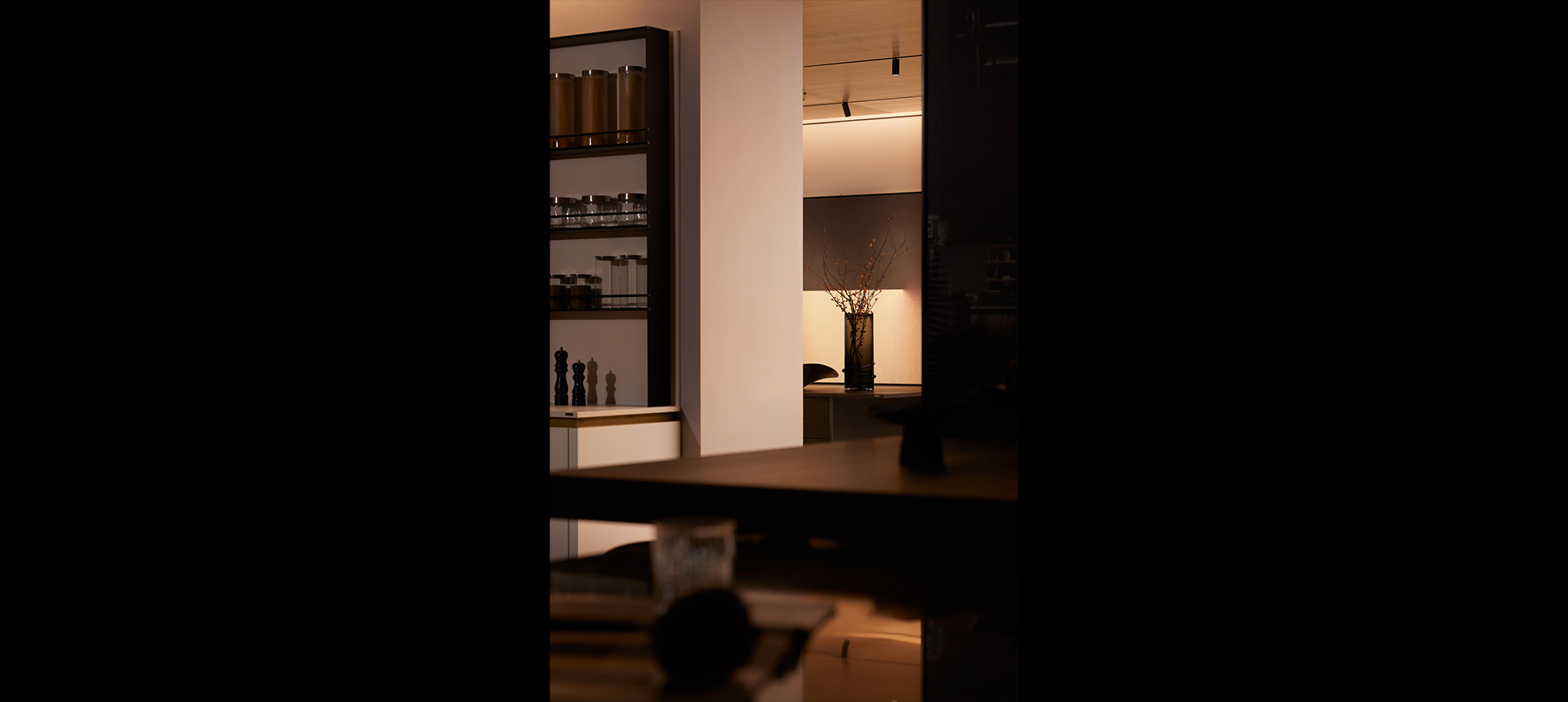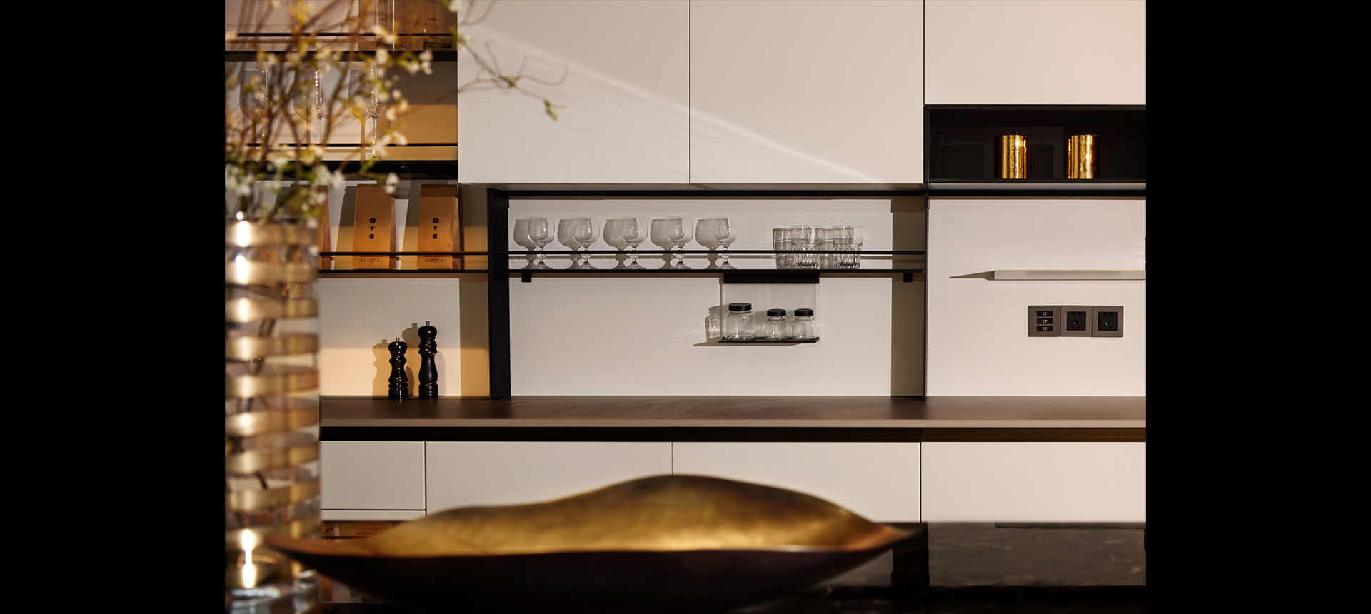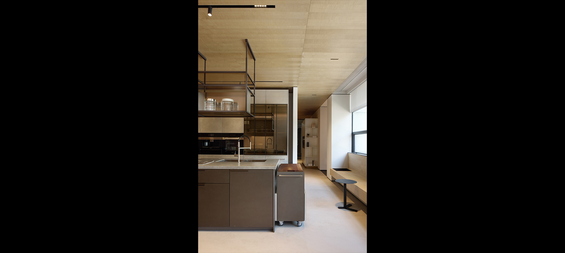 意大利Scavolini(深圳)展厅在空间规划上,设计师将日常的办公场所与展厅部分用隐形玻璃门分隔,彼此相连但相对独立,空间动线分明,互不干扰,以保证展厅空间的创作自由与纯粹性。