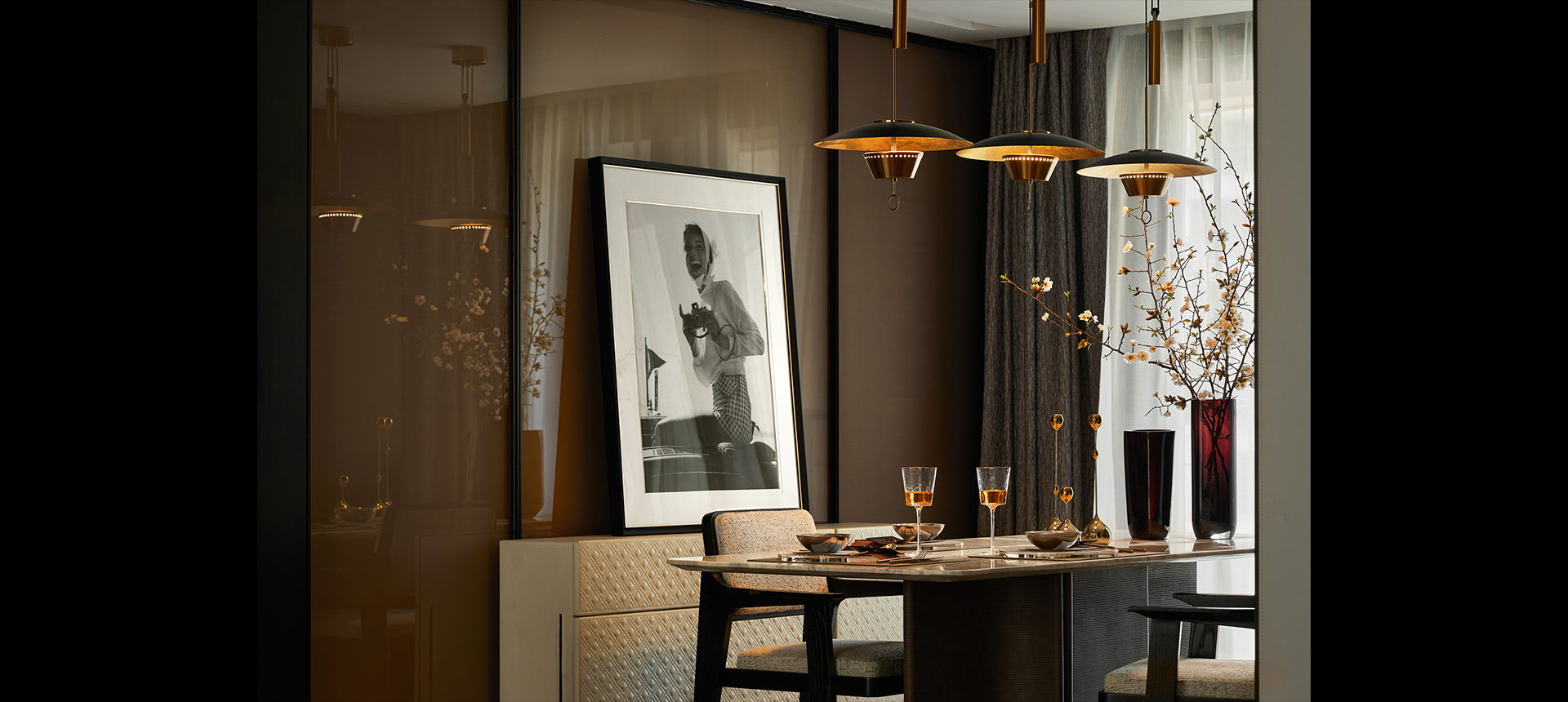 设计师对环境光、轮廓光、重点照明等进行了综合研究比对,运用了多种灯具互相配合,令到空间明暗张弛有度,打造层次感的同时塑造空间氛围感。