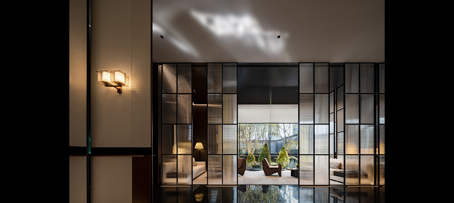 整个示范区的建筑分布将庭院围合于中心,动线设计紧扣庭院景观,从任一入口进入,都能感到自然在室内的延伸,创造游园式的空间体验。