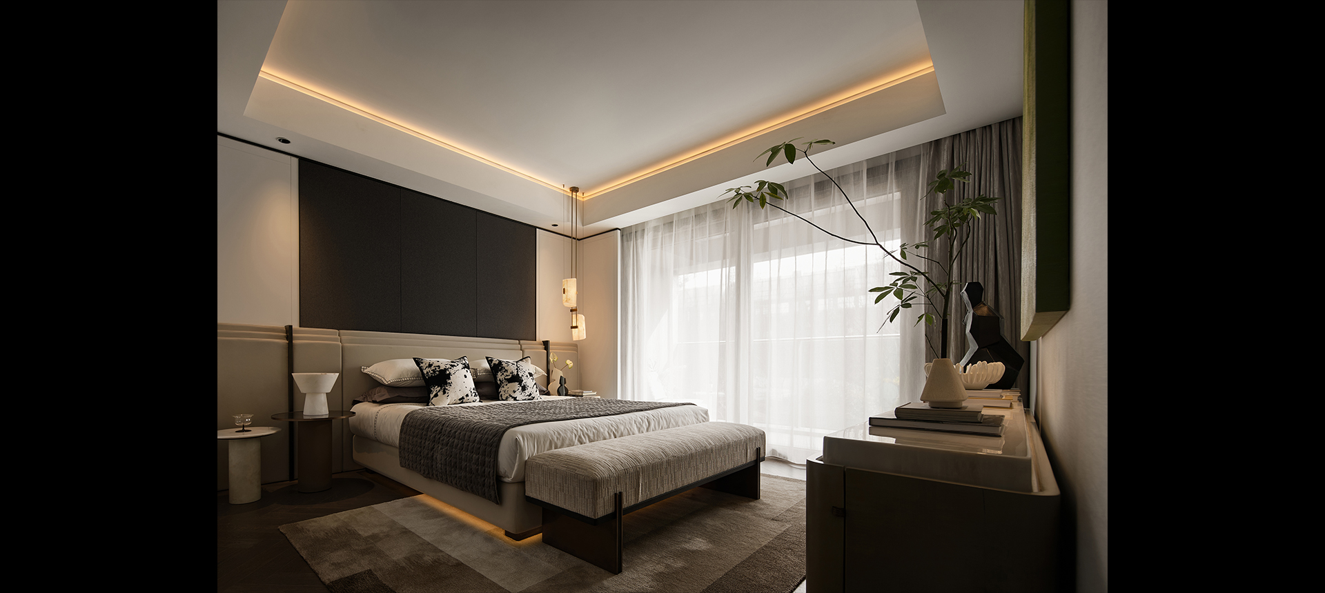 淡雅的配色及自然温和的材质组织,令室内外之间的过渡流畅,柔和的光晕提升着空间的美感与舒适,家的温馨与设计的品质兼得。