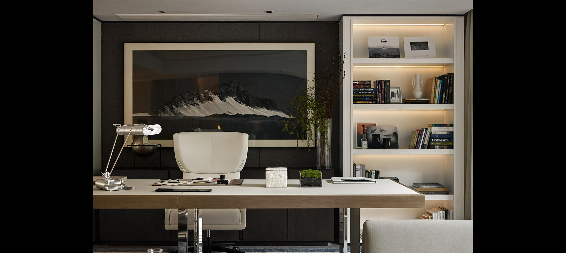书房的一角是舒适的阅读角落,柔软的椅子旁边堆着几本书,似乎邀请着你坐下来,沉浸其中。时光,宛如缓慢的弦乐,留下的是生活里和谐的诗篇。