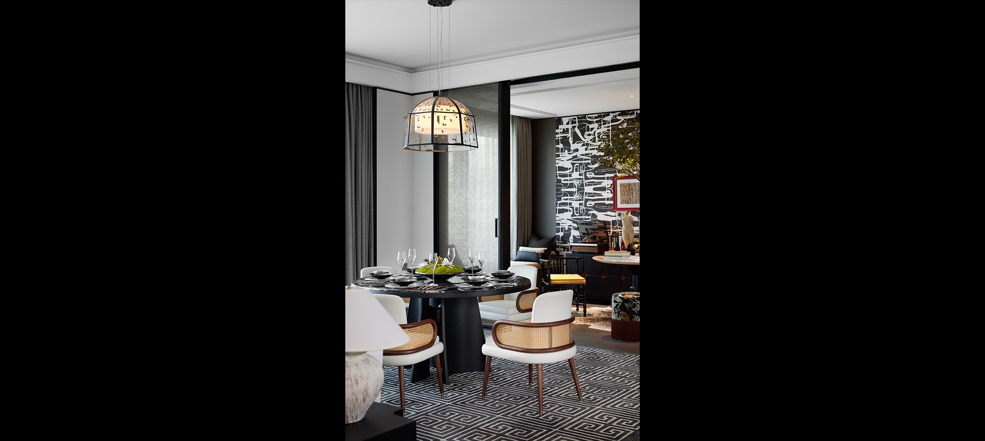 配上一个略显国风的艺术灯饰