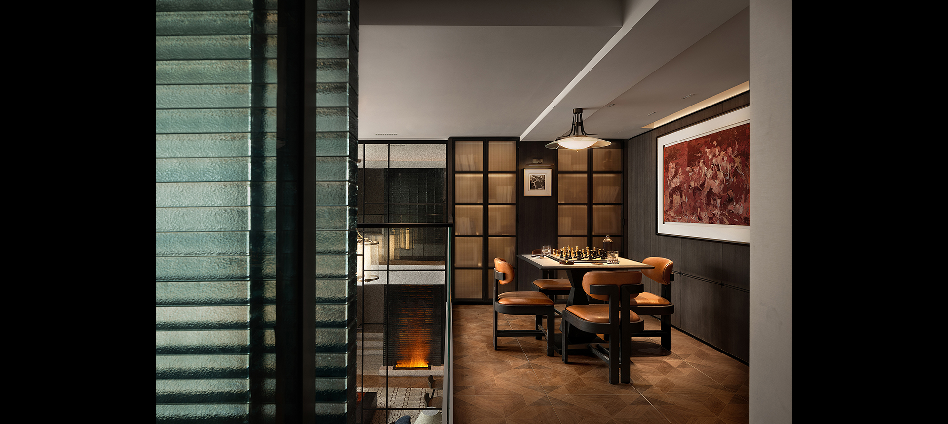 地下层是休闲娱乐的剧场,是别墅生活最宽裕的延伸空间。派对会客、书房办公、艺术收藏、棋牌影音…… 是一片肆意拓展的生活乐园。