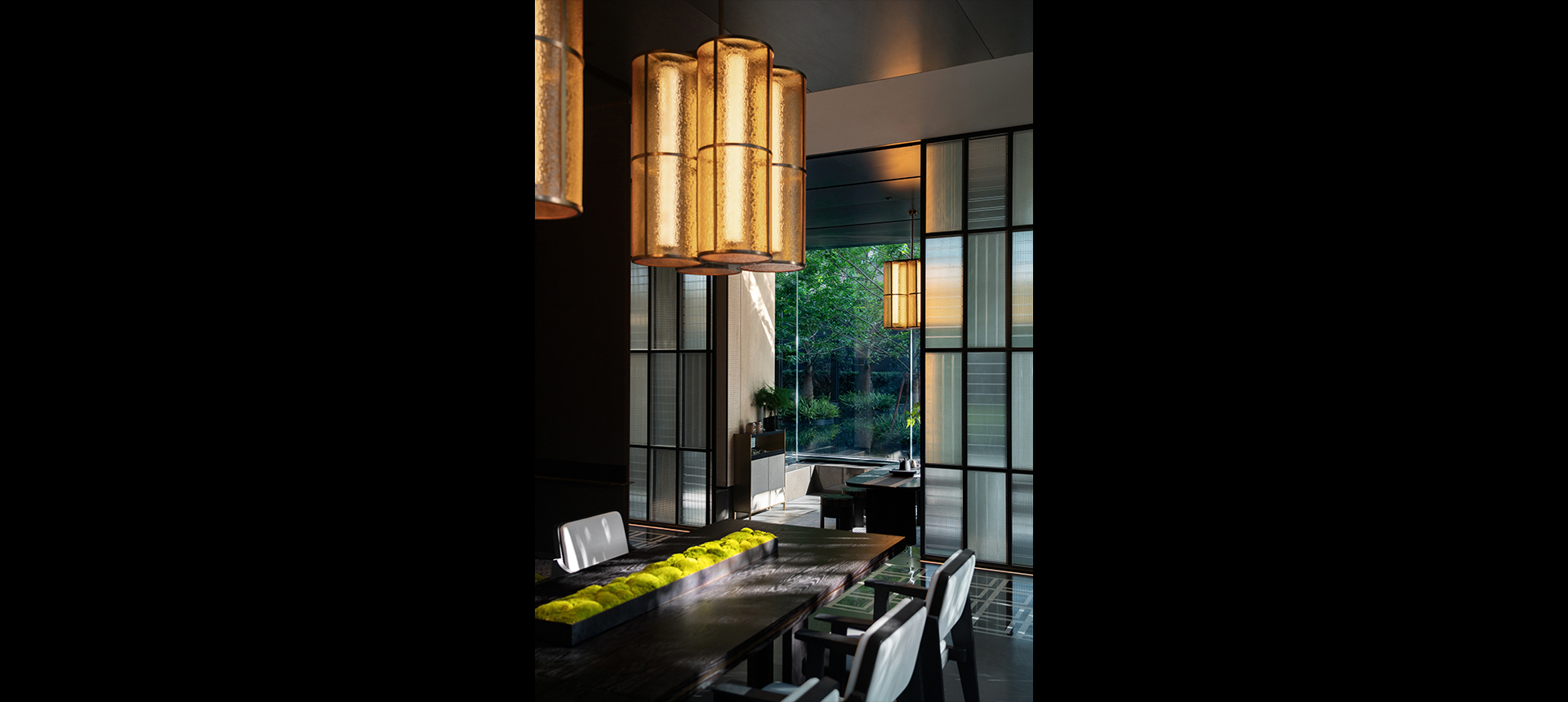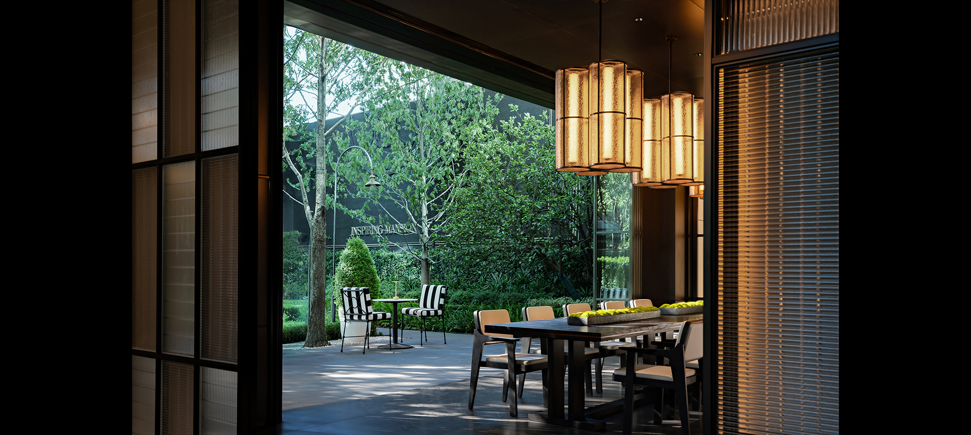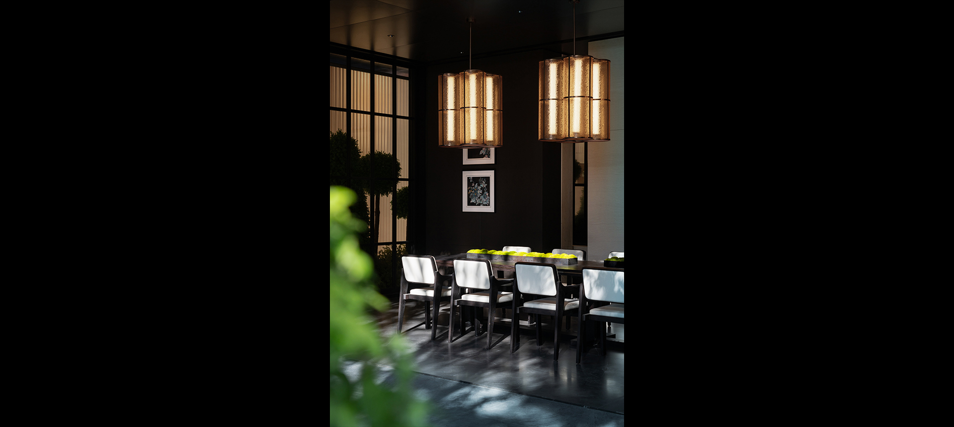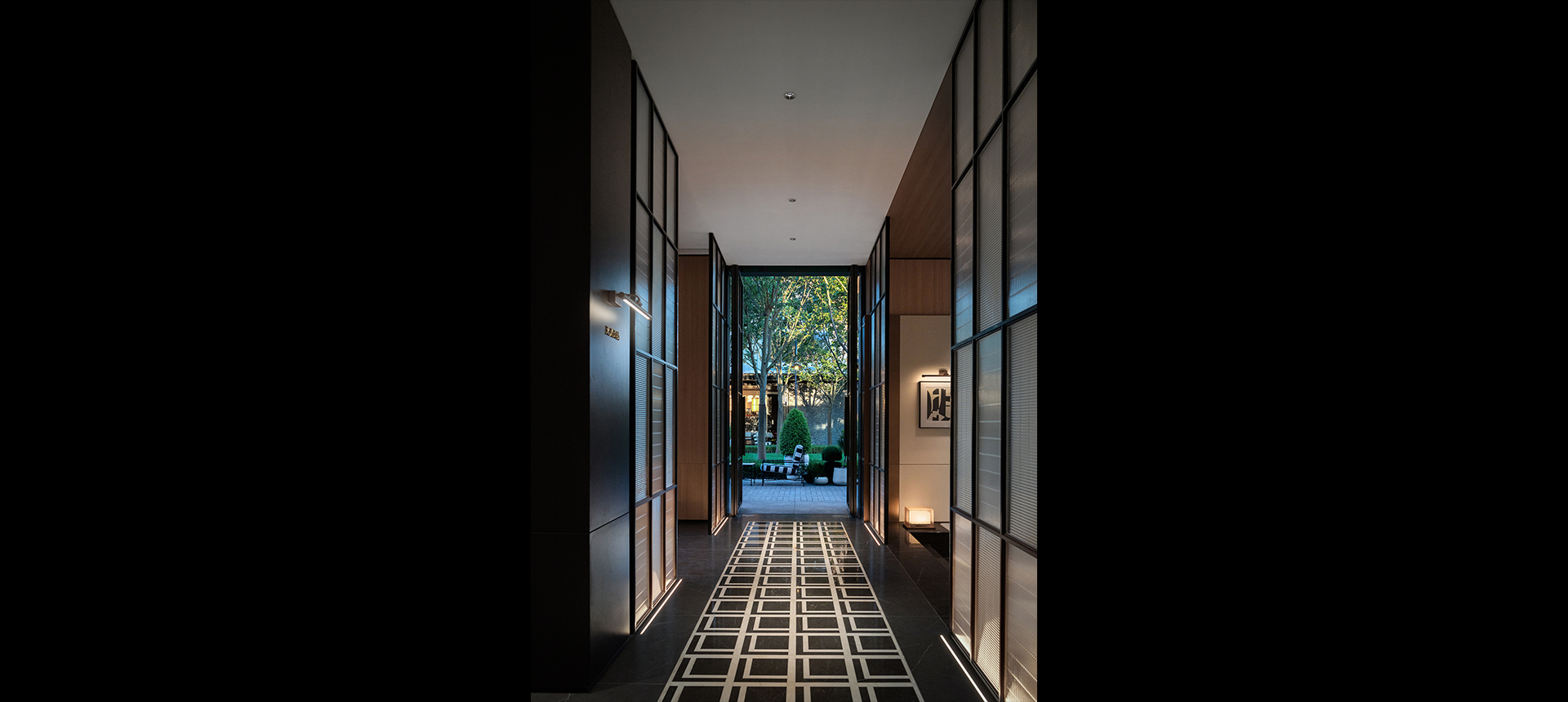 架空层的四周巧妙地运用了许多透明玻璃材质,使得室内空间与室外园林相互渗透,仿佛融为一体。而内部的空间划分也是采用艺术玻璃作软性分隔,不仅保持空间的通透性,且能增加一份独特的层次美感。