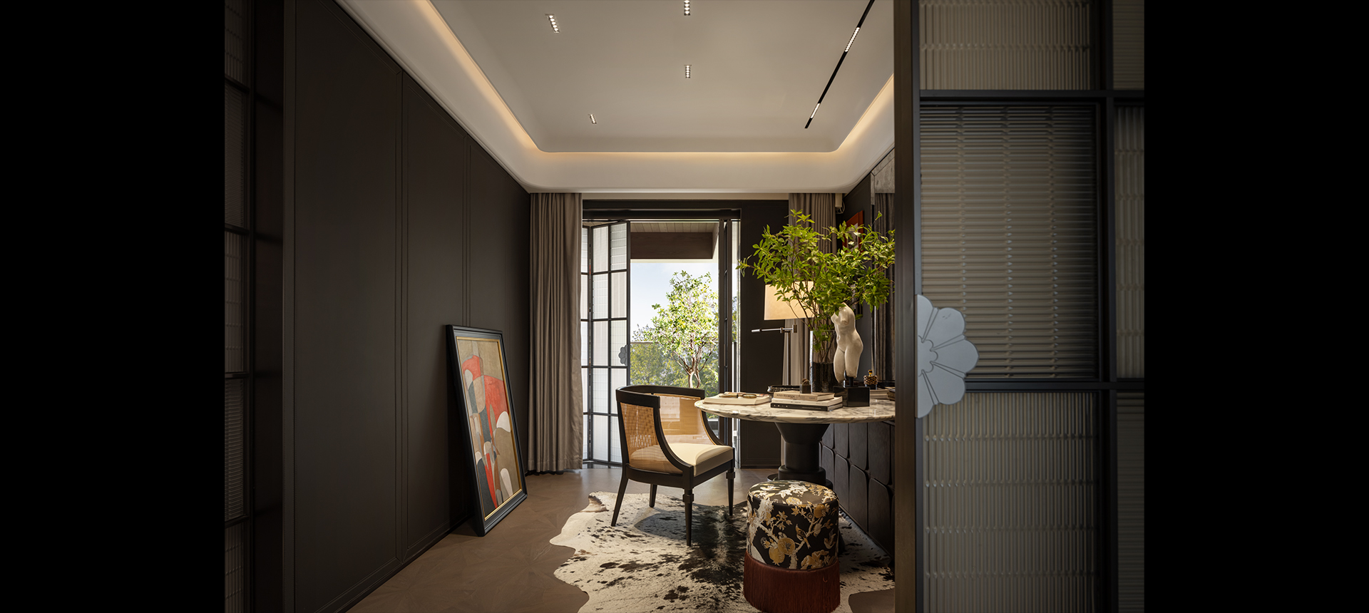 李益中空间设计将良好的建筑框架转化为一个既实用又富有审美艺术的居住空间,通过细腻的空间划分与流线设计,将空间的体验感和功能区的丰富度提升至新的高度,赋予了居住空间前所未有的灵动与自由。